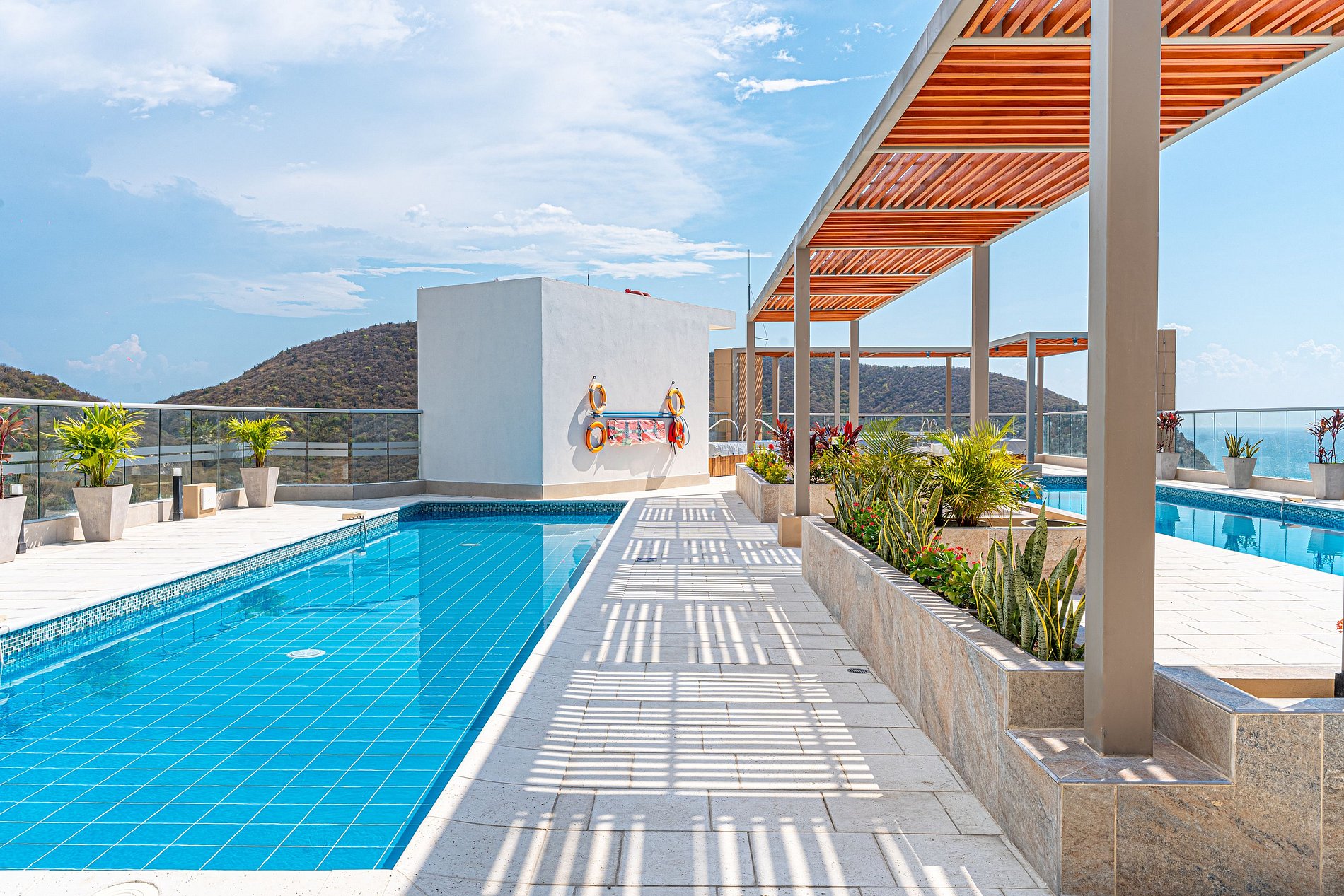 This modern apartment for up to 3 guests combines comfort and style in a prime location, just steps away from Salguero Beach. It features one double bed, one single bed, air conditioning, and a beautiful mountain view — perfect for relaxing after a sunny day. The building includes a pool, gym, and lounge areas, ideal for enjoying the Caribbean breeze in a calm and contemporary setting.