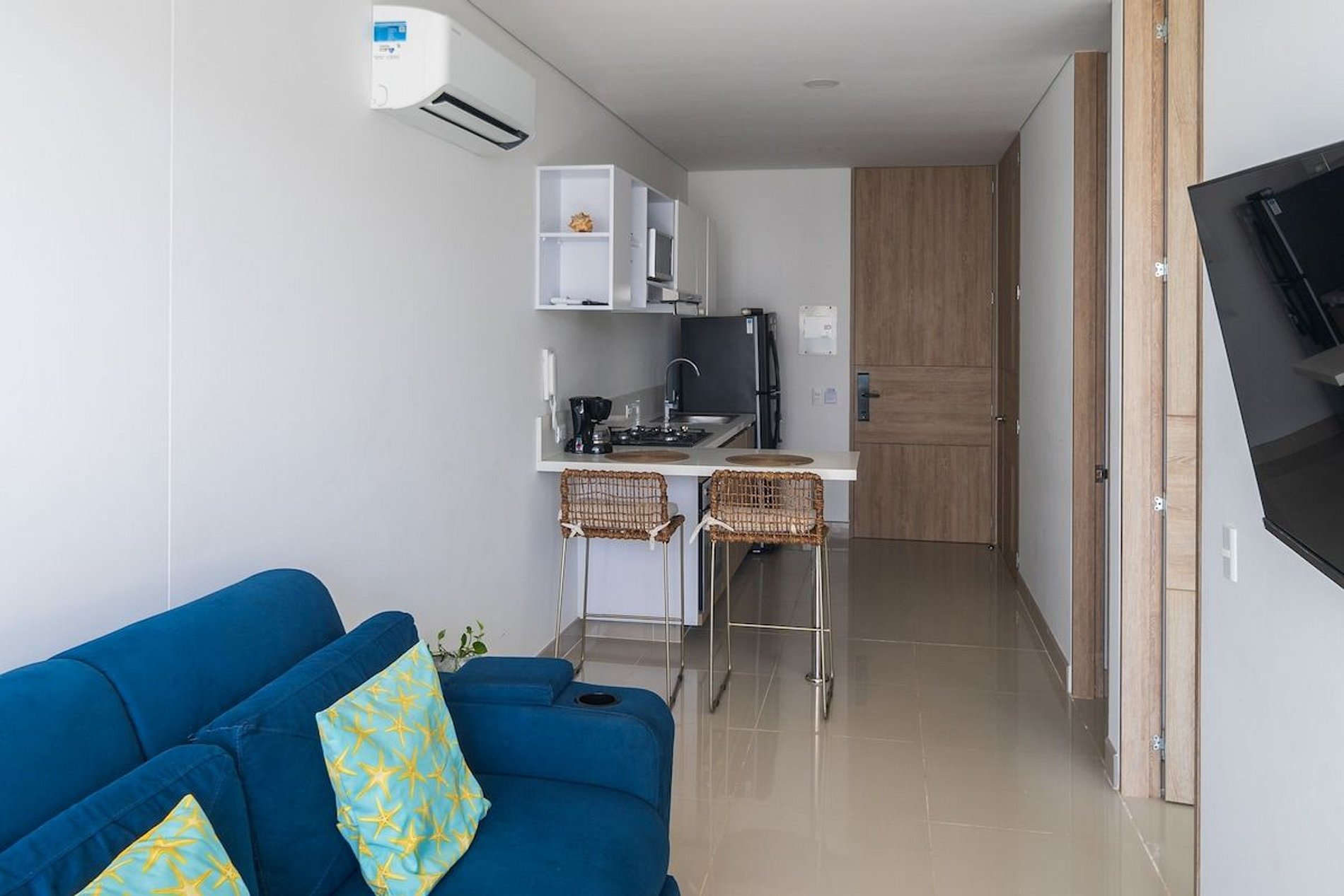 This beautiful flat is located in Playa Salguero. With a privileged location, it is only 5 minutes from the Rodadero, 20 minutes from the city of Santa Marta and 15 minutes from the airport. It also has amenities such as parking and air conditioning.
