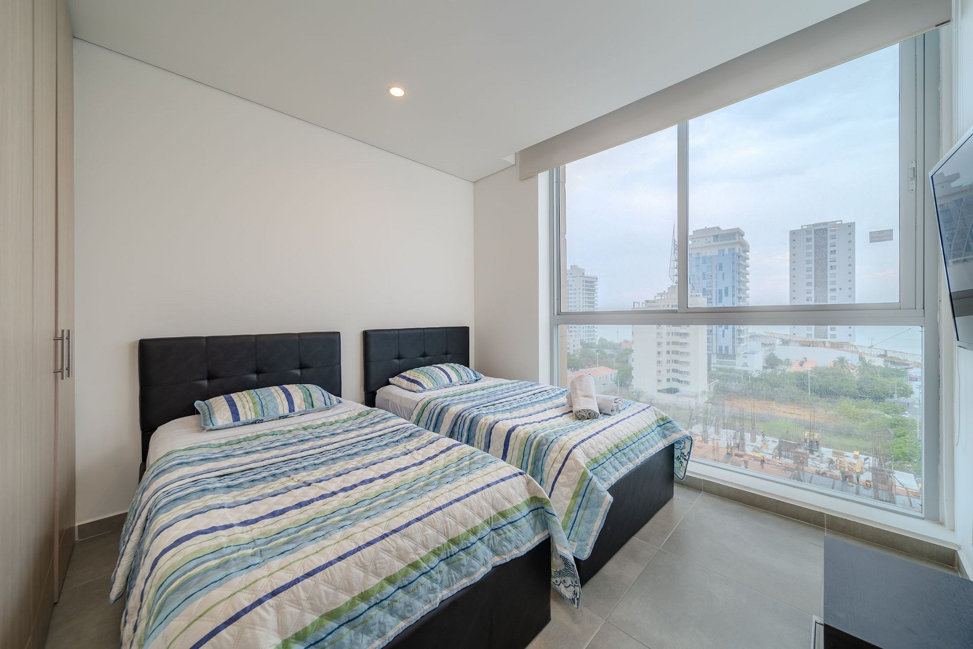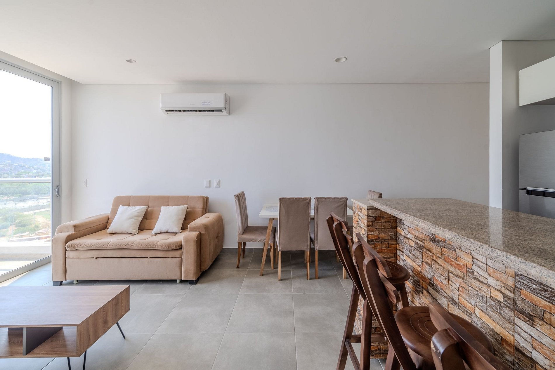 This modern 78.6 m² apartment, located on the 9th floor of a new building just a few meters from the beautiful Salguero Beach, is the ideal place for families or groups looking for comfort and proximity to the sea. It has two bedrooms, two bathrooms, a living-dining room, and two balconies from which you can enjoy a charming view. The open-plan American-style kitchen is equipped with a four-burner gas stove, oven, microwave, refrigerator, and washing machine. The master bedroom offers a double bed, a single sofa bed, private bathroom, and Smart TV. The second bedroom has two single beds and a Smart TV, while the living room has a double sofa bed and Smart TV. The apartment is fully furnished and equipped with air conditioning in all rooms, a desk with a computer, and private parking. The building offers spaces designed for relaxation and fun, such as adult and children's pools, jacuzzis, a sauna, a Turkish bath, a gym, a games room, and a mini-market within the complex. Everything you need to enjoy a perfect stay in one of the most attractive areas of Santa Marta, just steps from the sea.