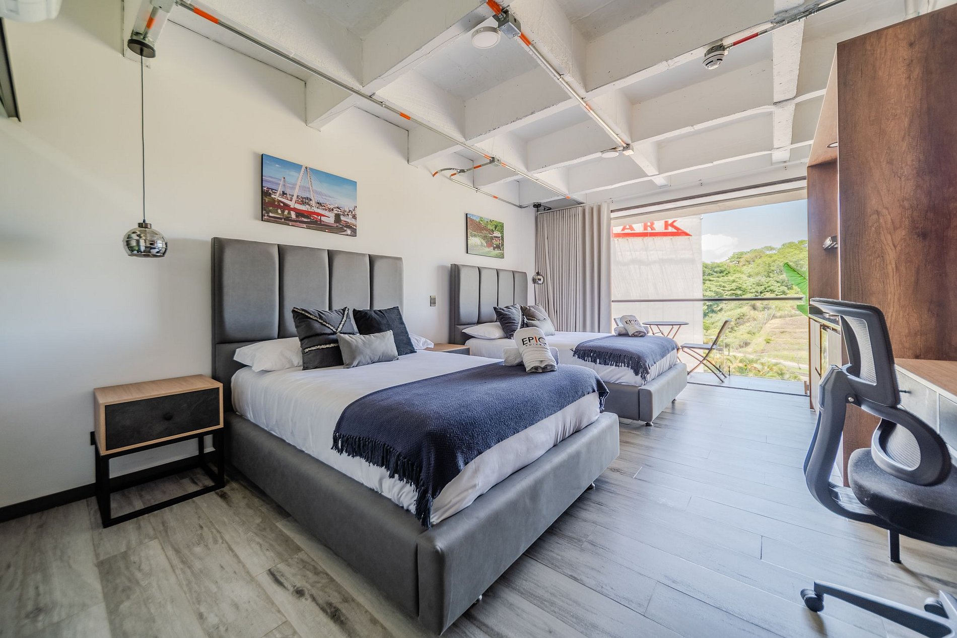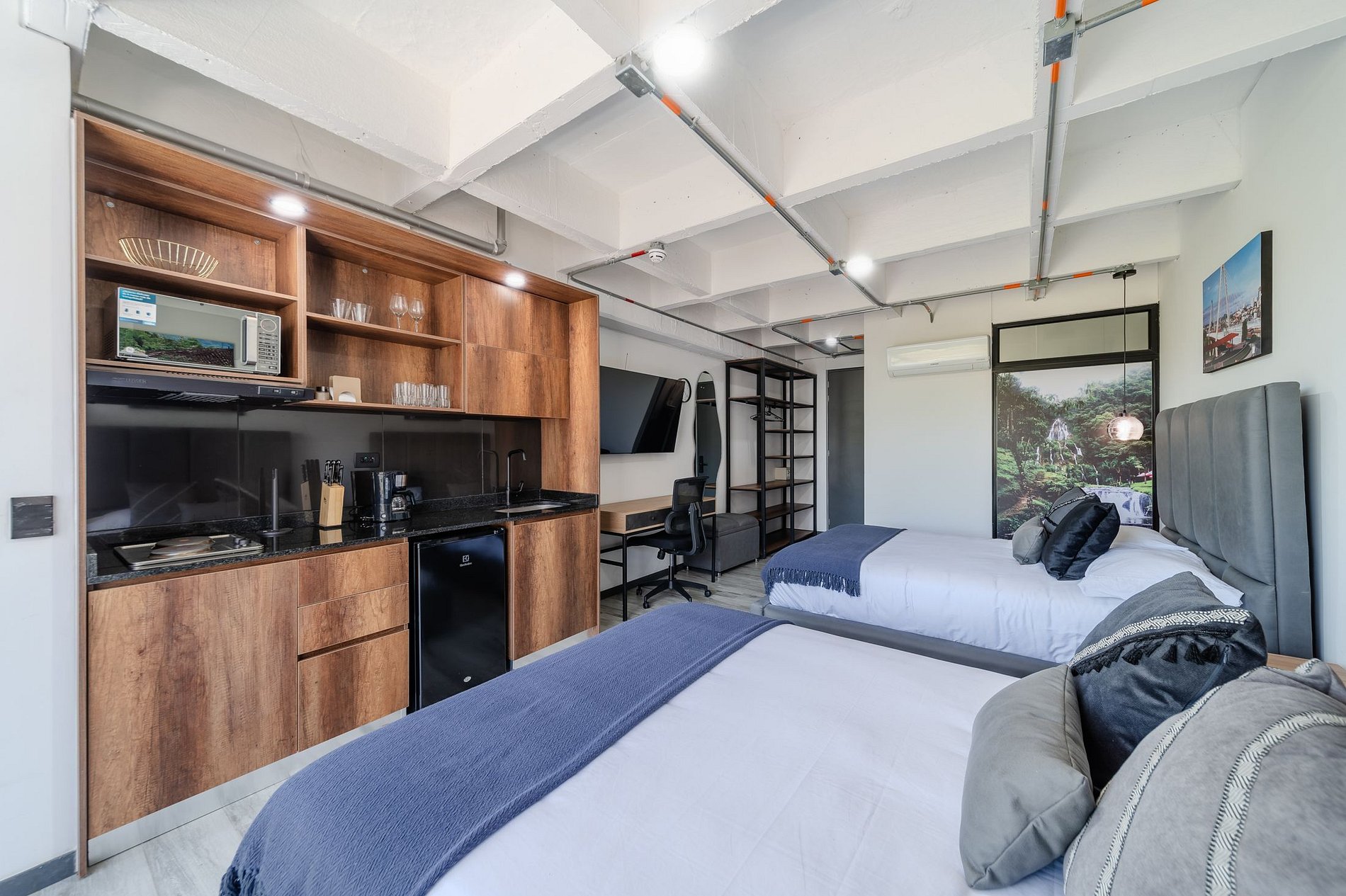 Immerse yourself in luxury and comfort in the heart of Pereira! This stunning loft offers you everything you need for a perfect stay: two comfortable 1.40 x 1.90 cms beds, air conditioning โ๏ธ, hot water ๐ฅ, WiFi ๐, TV ๐บ and a work area ๐. With a furnished balcony offering lovely views of the street and greenery ๐ณ, this modern flat facing 30 de Agosto Avenue is the ideal choice for your visit to the city.