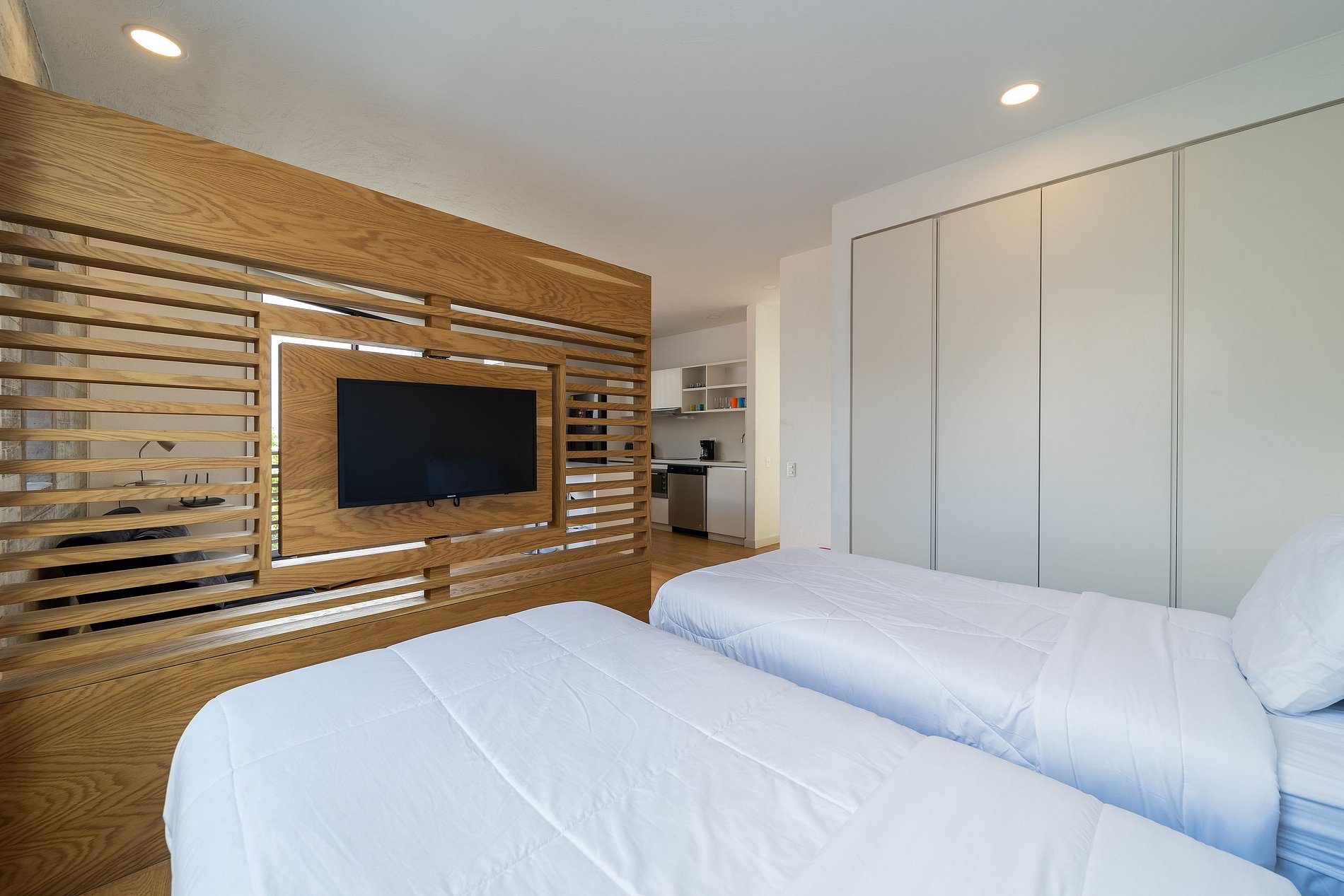 The architectural proposal of the property combines the contemporary character in the use of exposed concrete elements and wood on the facades, with design elements that respect the essence of the traditional architecture of La Candelaria. 24/7 security, parking, common areas to enjoy and more. The ideal property for any occasion.