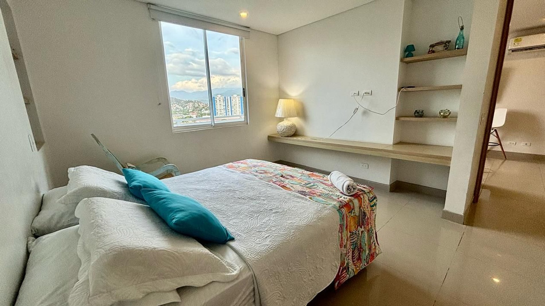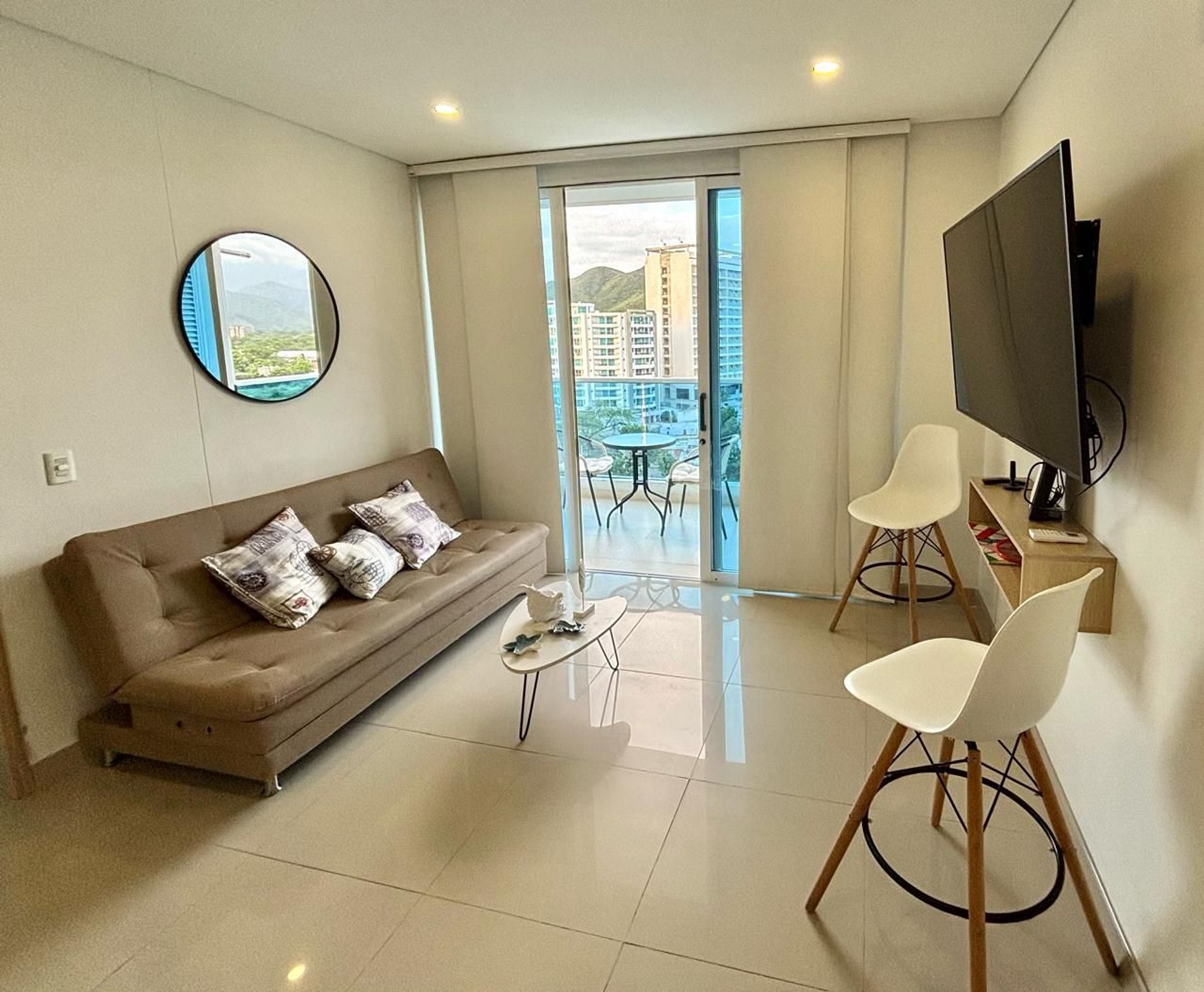 Welcome to your paradise in Santa Marta. Enjoy an unforgettable stay in this modern and cosy flat which is in a building with direct access to the beach and offers a variety of luxury amenities, perfect for an unforgettable holiday. Relax by the pool, enjoy a coffee on your balcony with side sea and mountain views , or savour a delicious meal in the building's private restaurant with pool service .