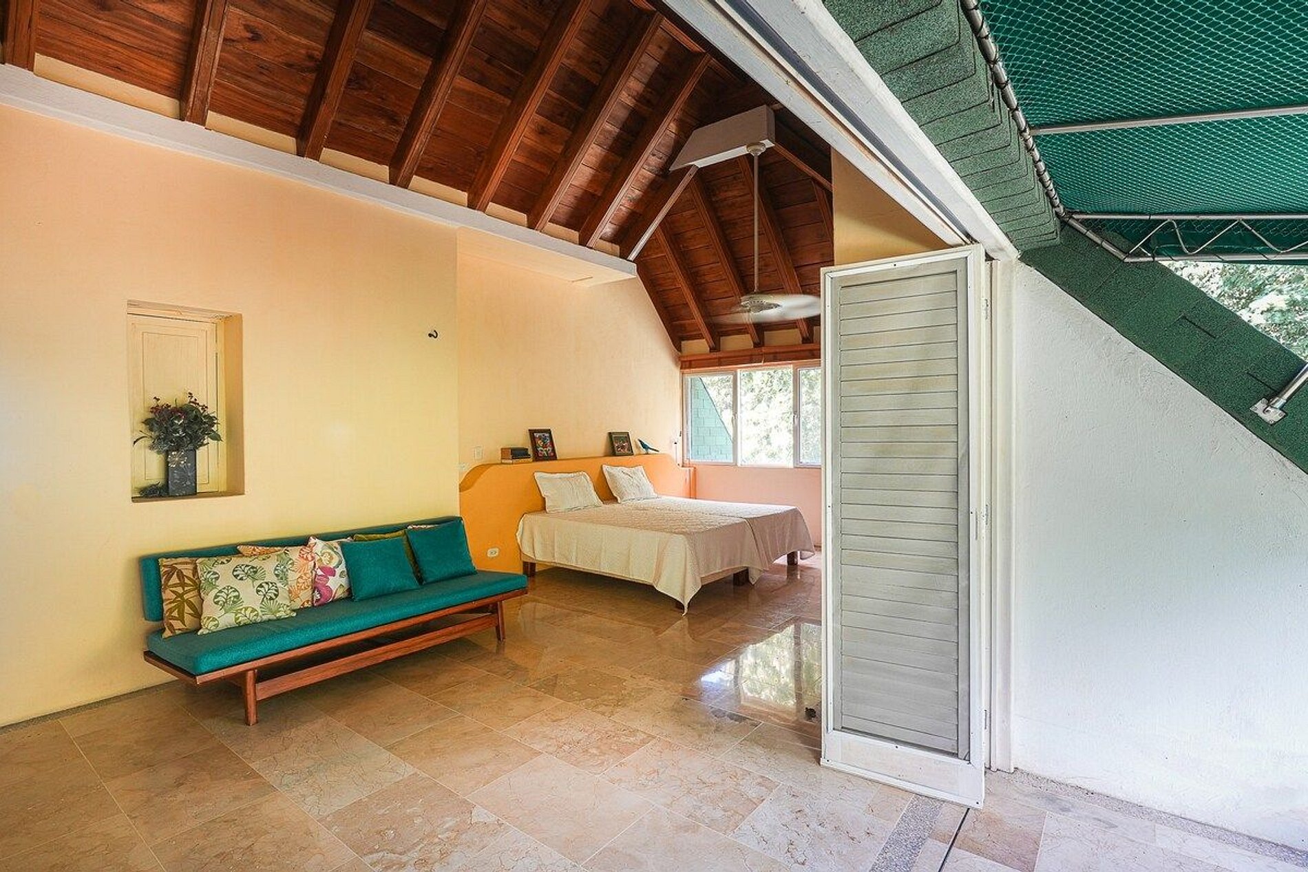 Master bedroom and auxiliary bedroom #1 are on the second floor of the main house. Auxiliary room #2 is located in the auxiliary house on the second floor and rooms #3 and 4 in the second auxiliary house. The main room and auxiliary room #1 have an internal bathroom, auxiliary room #2 has 2 bathrooms in the social area of the auxiliary house and auxiliary rooms #3 and 4 share a bathroom. Additionally the staff area has a bathroom and in the wet area there is a full bathroom. The house has a swimming pool, playground, showers and bathrooms in the social area, parking, children's pool.