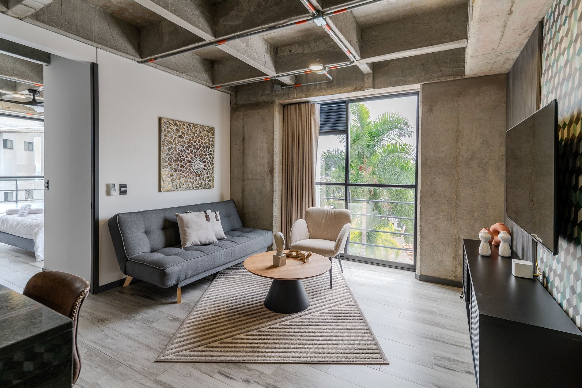 π The Apt: This cozy one-bedroom flat features a queen master bed and a sofa bed in the living room, ideal for a comfortable stay. There is a bathroom located in the bedroom and a fully equipped kitchen π³.
