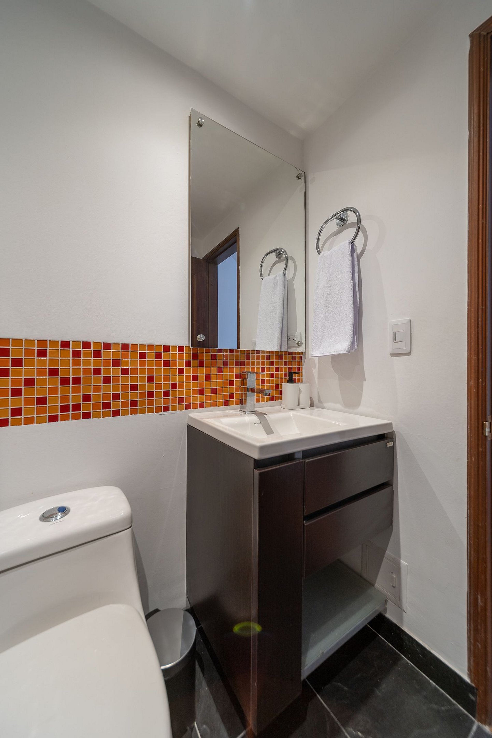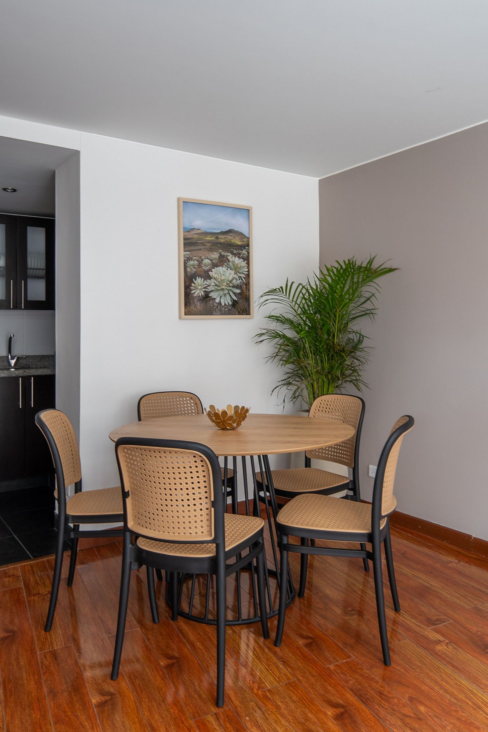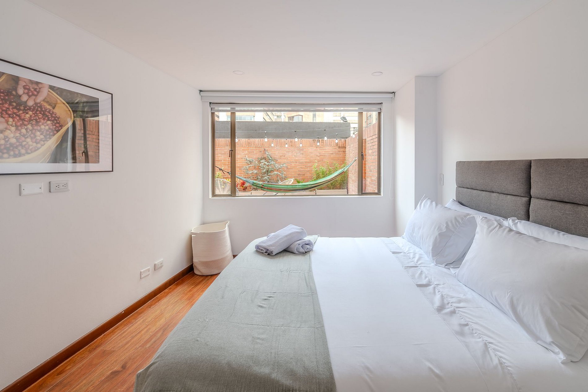 This exclusive 3-bedroom apartment is ideal for groups of up to 5 people, with 2 queen beds and 1 single bed. The master bedroom has its own private bathroom, offering privacy and comfort after a day exploring the vibrant city of Bogota. The walls are decorated with paintings highlighting Colombia's most emblematic attractions.