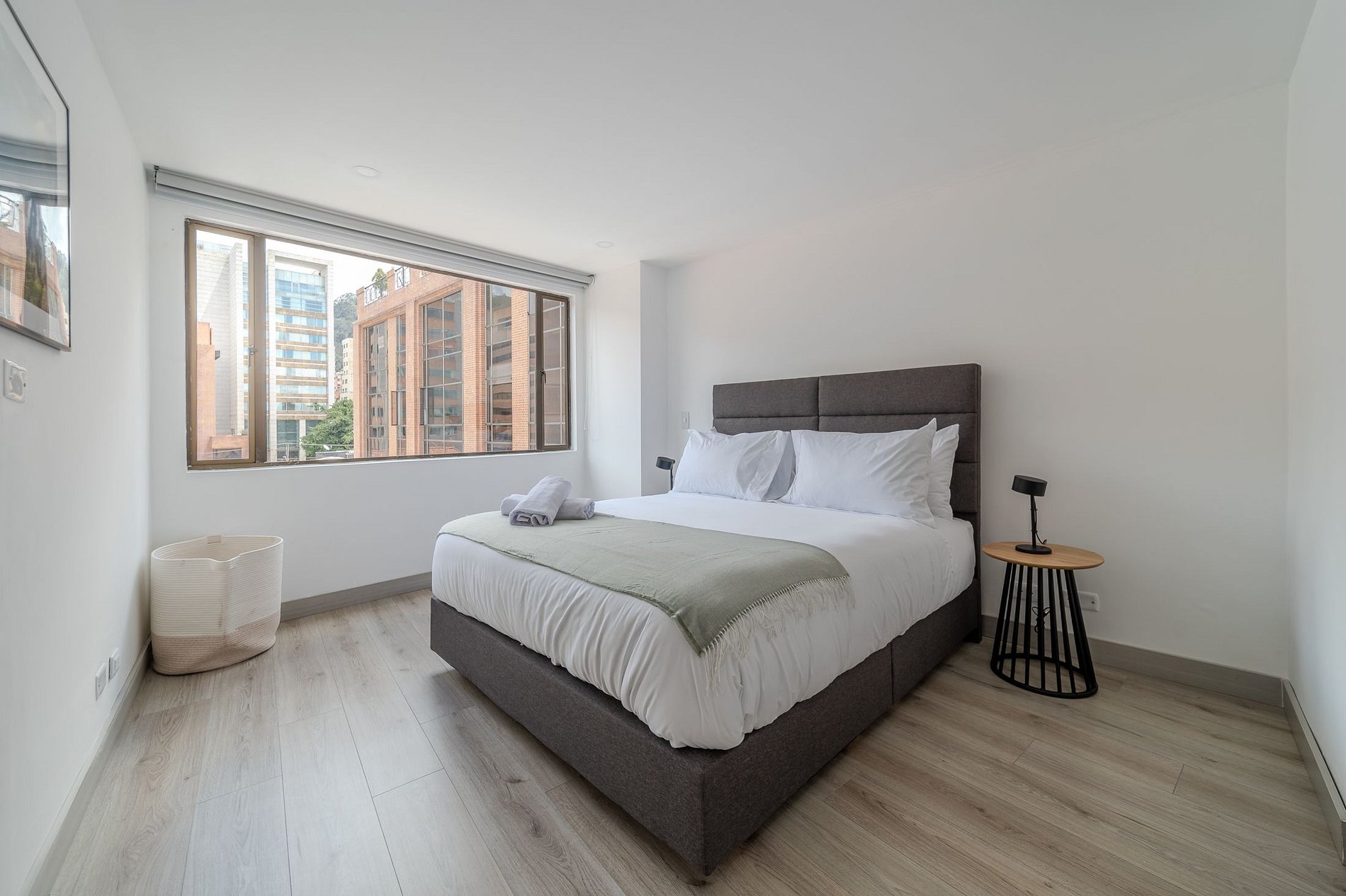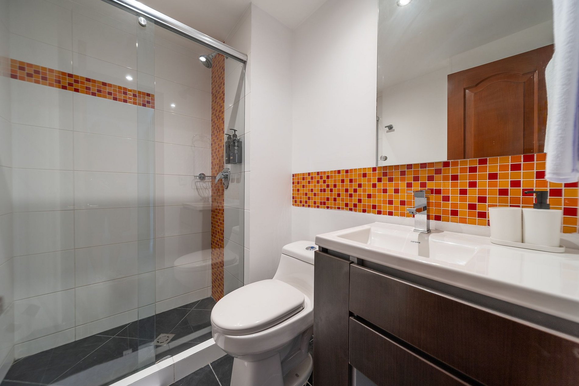 This apartment invites you to discover a piece of Colombia. With 2 spacious bedrooms, each equipped with queen beds, this space is the perfect retreat for those seeking rest and comfort after exploring vibrant Bogota. The master bedroom offers a private bathroom, creating an oasis of tranquility and privacy. The second bathroom, located in the common area, guarantees comfort for all guests, while maintaining the harmony between functionality and style.