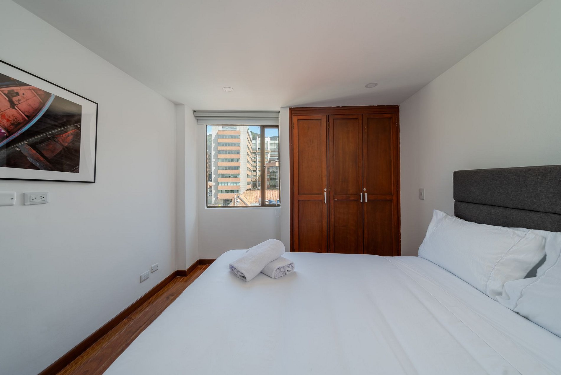 Your Colombian retreat in the financial and touristic heart of Bogota. This modern 4-bedroom apartment is designed for large groups, accommodating up to 8 people. It offers 2 queen beds and 2 double beds, creating the perfect balance between space, comfort and style. Every detail has been thought out to reflect contemporary comfort, creating a cozy atmosphere where you can relax and feel at home.