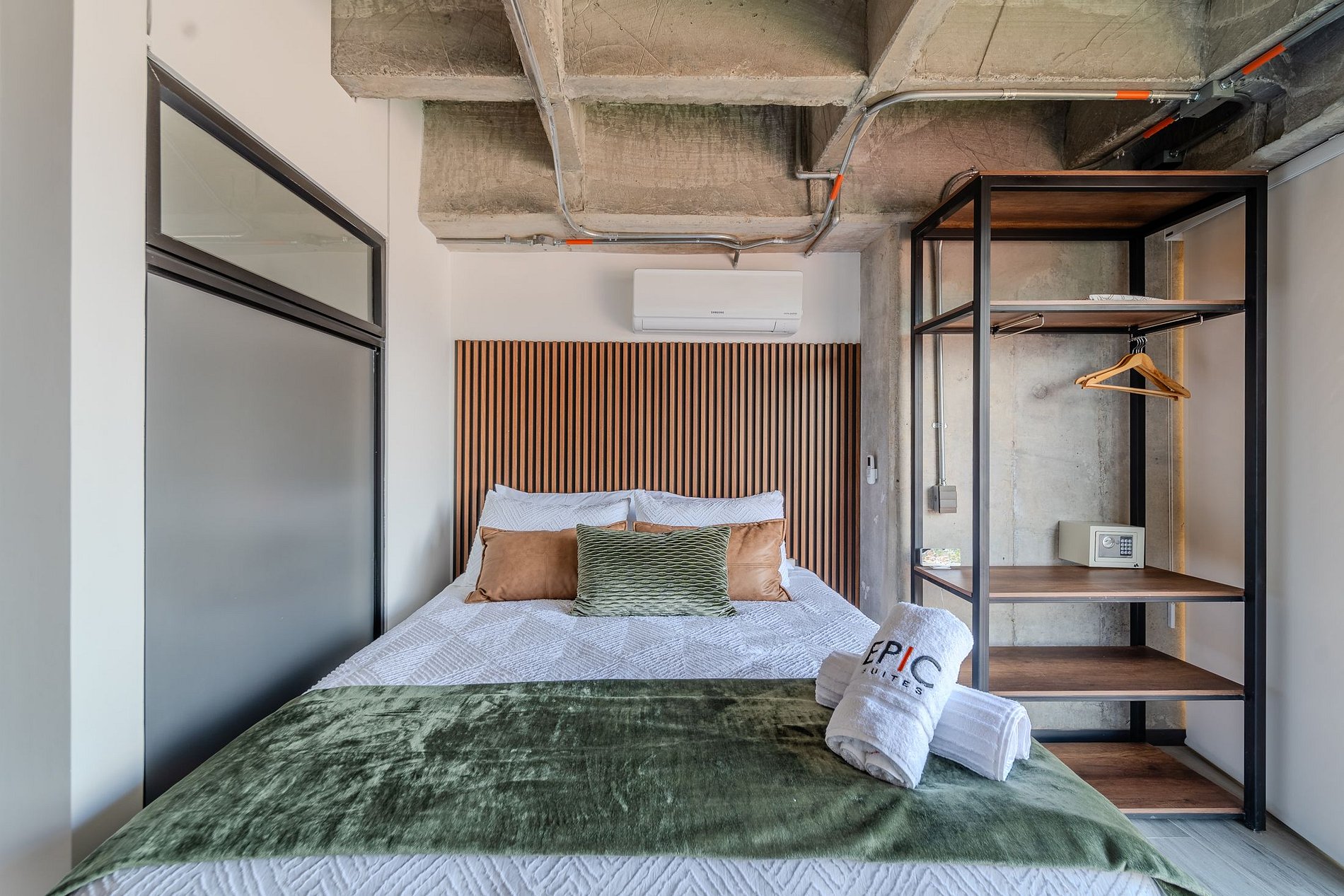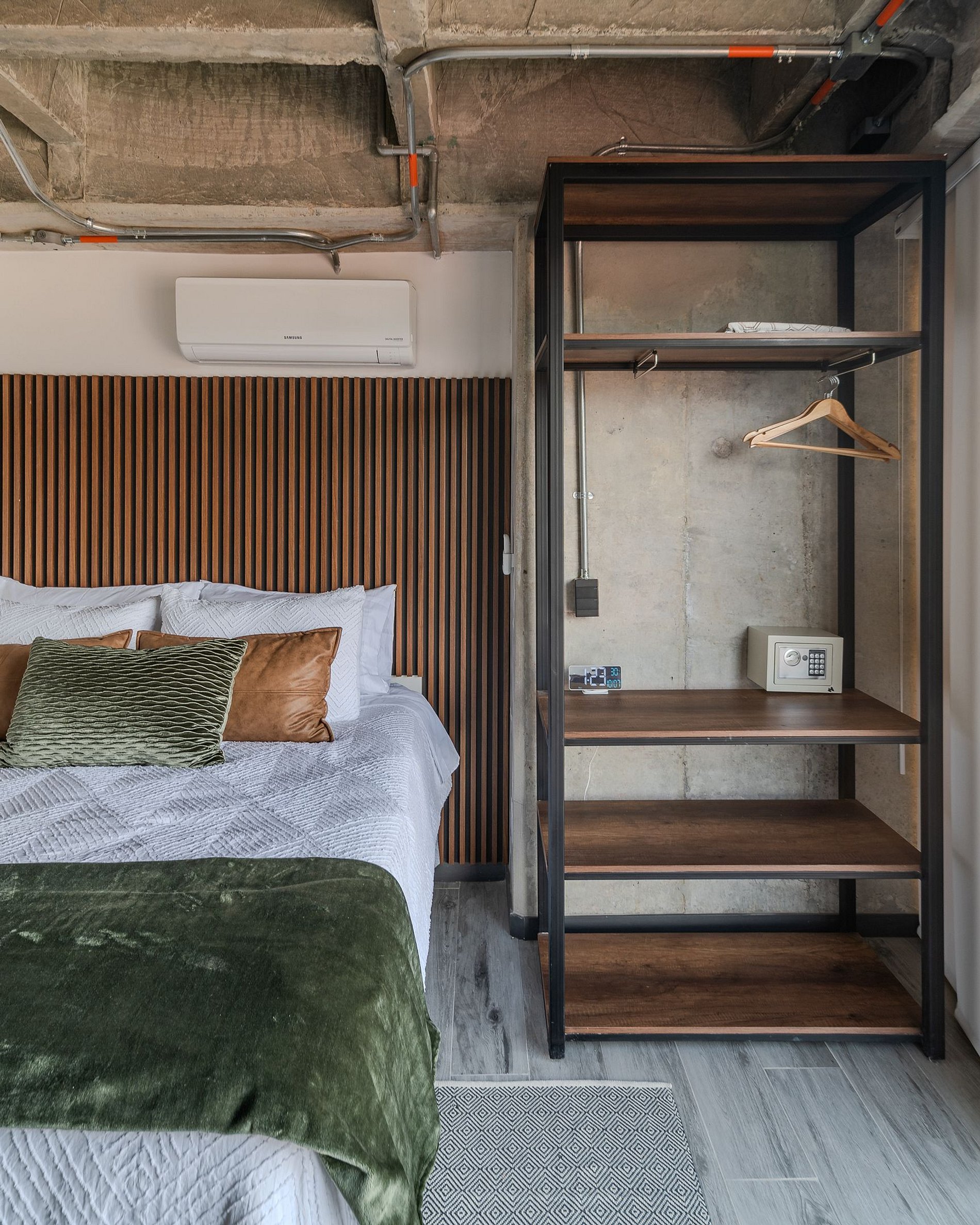 The Loft: Cozy loft-style flat with queen bed, perfect for a comfortable stay. It has a social bathroom and a fully equipped kitchen .