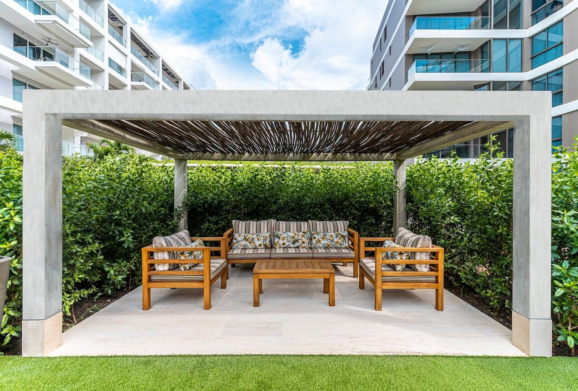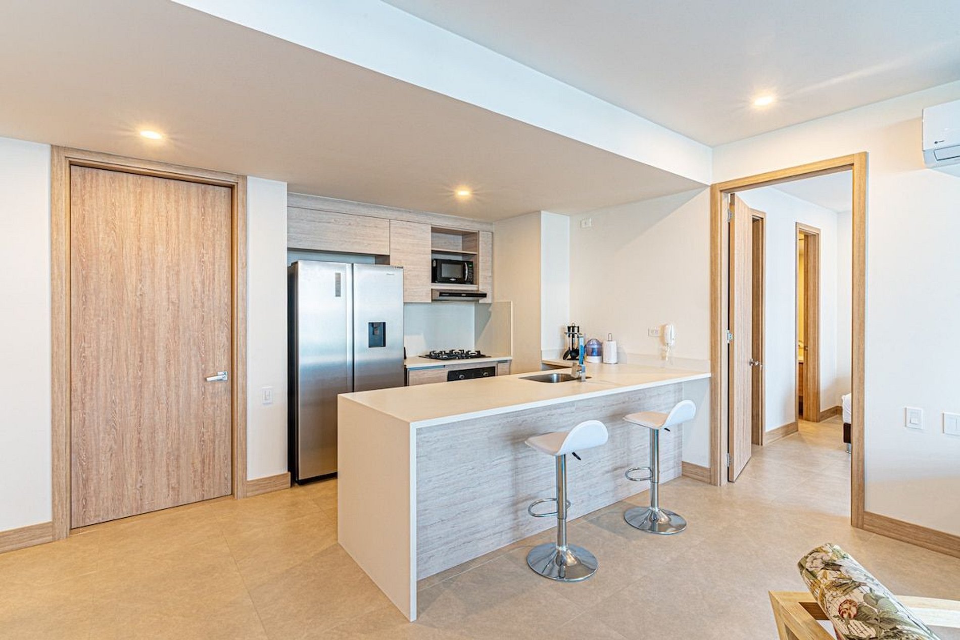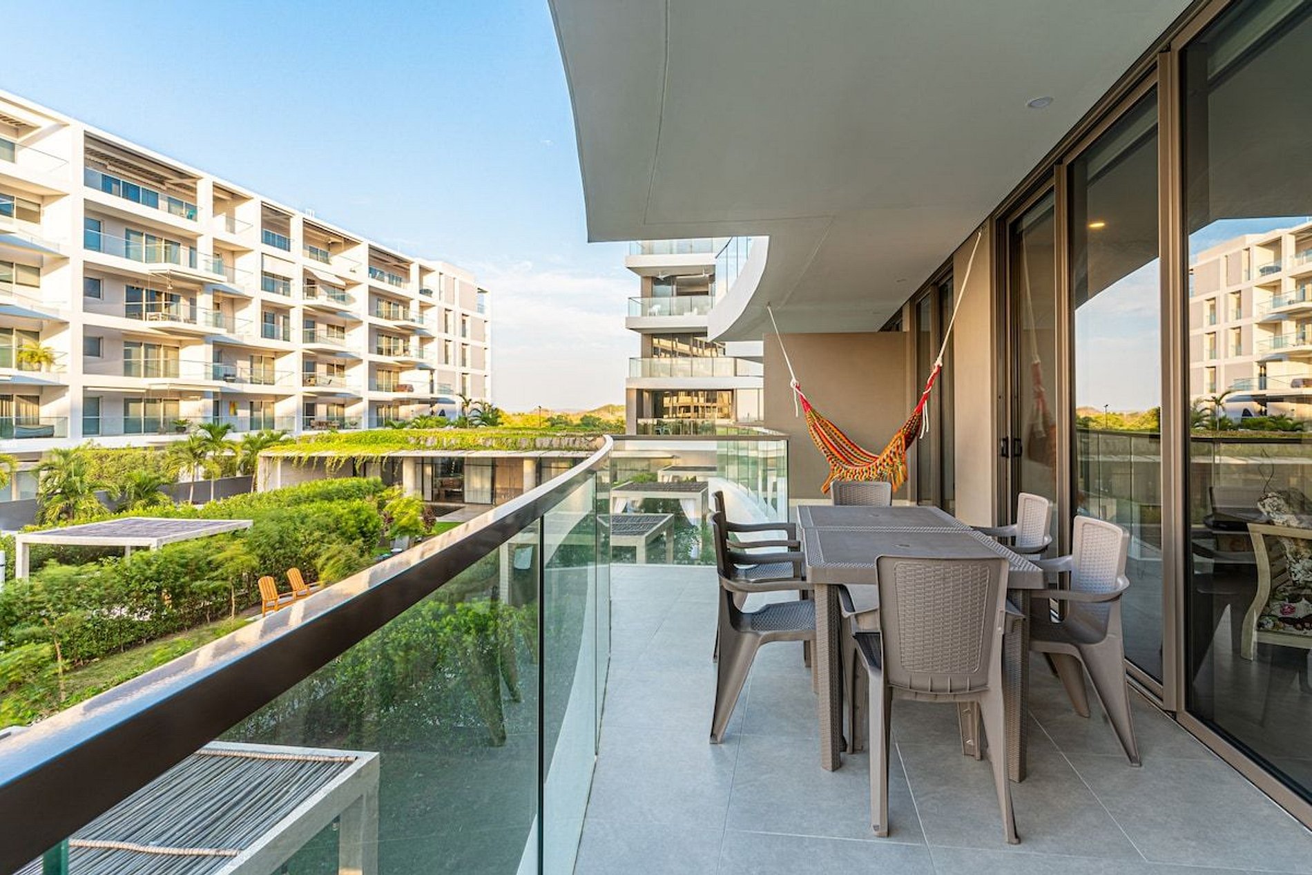 This condominium is located in the exclusive area of Serena del mar. A few meters from the quiet beaches of the place and a few minutes from the airport and the walled center. It is an oasis of peace.
