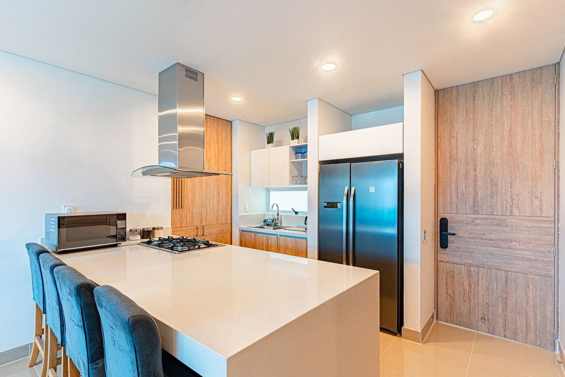 The apartment is a modern option for those looking for accommodation in the Rodadero Sur area, specifically in Salguero Beach. With 3 bedrooms and 2 bathrooms for a capacity of 6 people. The apartment is fully equipped with a full kitchen and a washing machine. In addition, the building itself offers numerous benefits and amenities, such as swimming pools, jacuzzis, direct access to the beach, an on-site restaurant and bar, a gym and sports courts.
