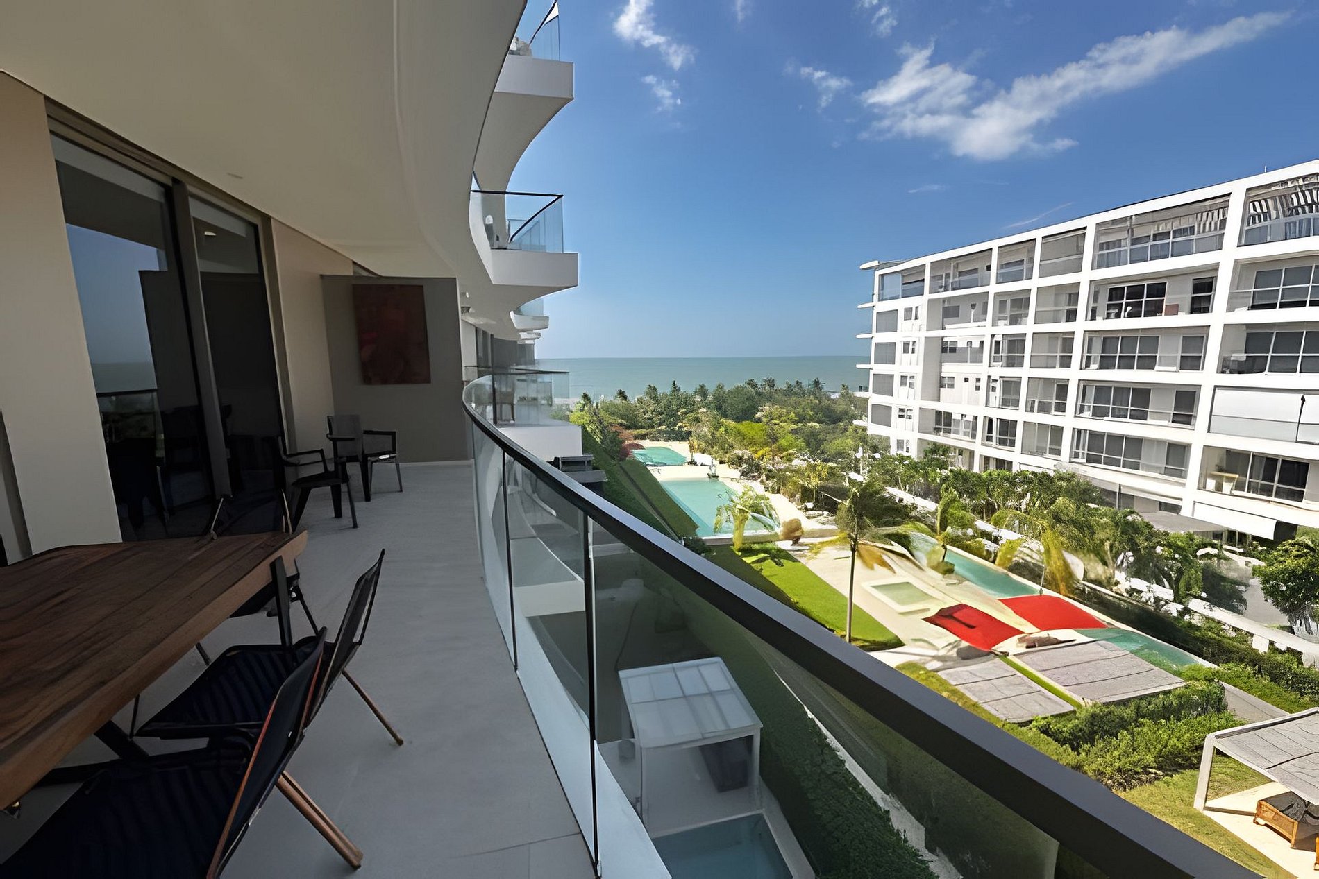 Welcome to your oceanfront oasis! This spectacular 114m² apartment is located in the exclusive Morros Zoe condominium, in the quiet area of Serena del Mar. A few meters from the most serene beaches and only minutes from the airport and the charming walled center of Cartagena, it is the perfect place for a dream vacation.