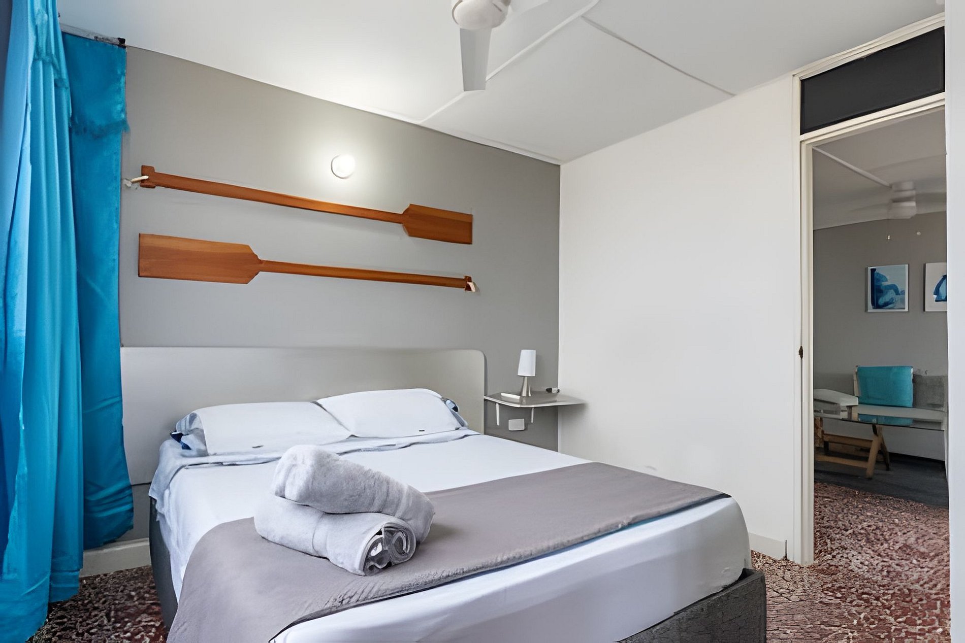 It features a beautifully designed living room with TV and streaming services and a fully equipped kitchen with laundry area, refrigerator, stove and cooking utensils to prepare any meal in comfort. The master bedroom has a double bed, while the secondary bedroom offers a bunk bed with two single beds. It also has a private bathroom in the master bedroom and a social bathroom, air conditioning and ceiling fan for comfort.
