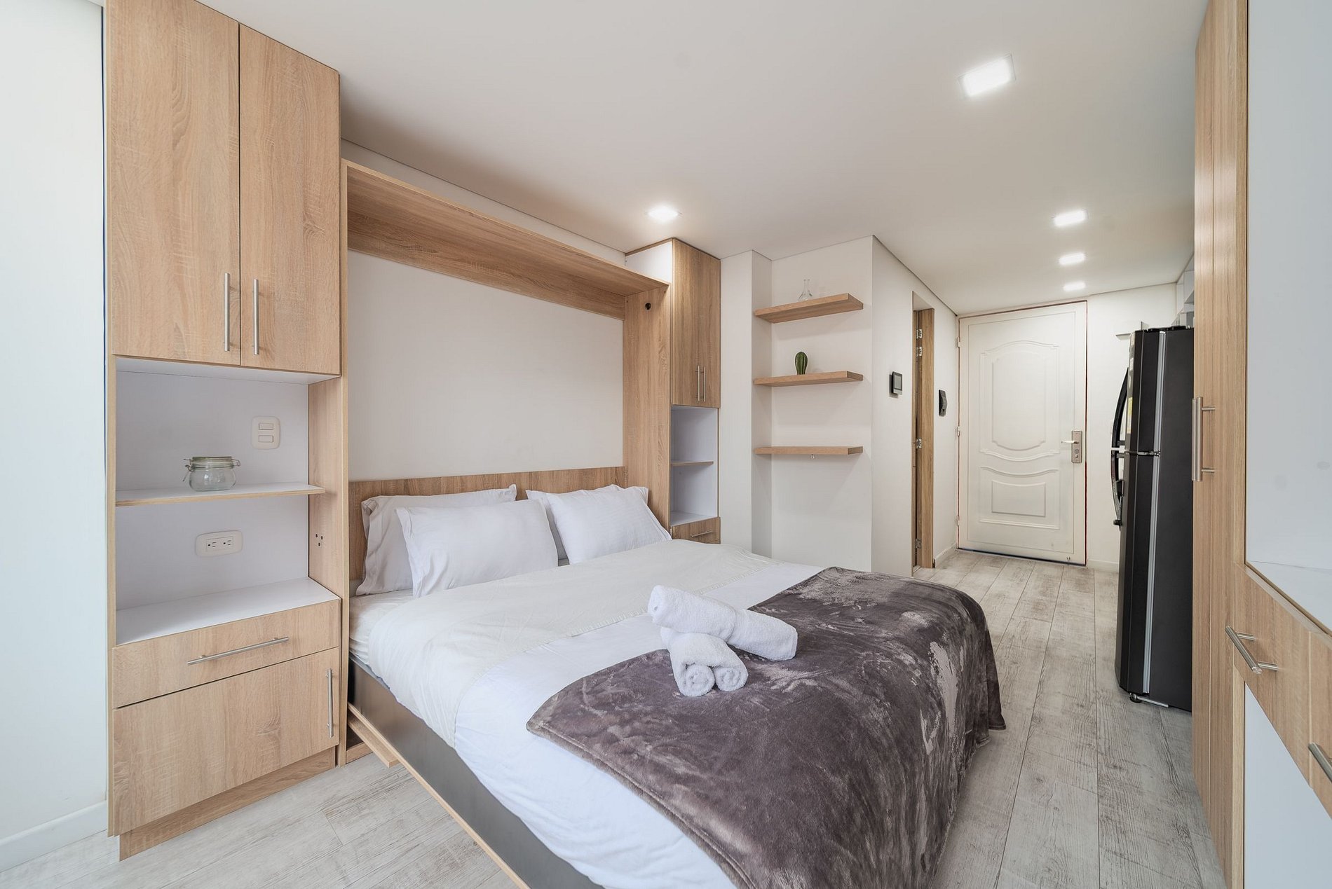 Atardecer 57 x Ahead offers 11 modern studio apartments in the heart of Teusaquillo, minutes away from the Movistar Arena, El Campín and Chapinero. Located in a strategic area with easy access to public transportation, universities, shopping centers and restaurants. Comfortable and well-designed spaces, ideal for travelers, managed by a professional team.
