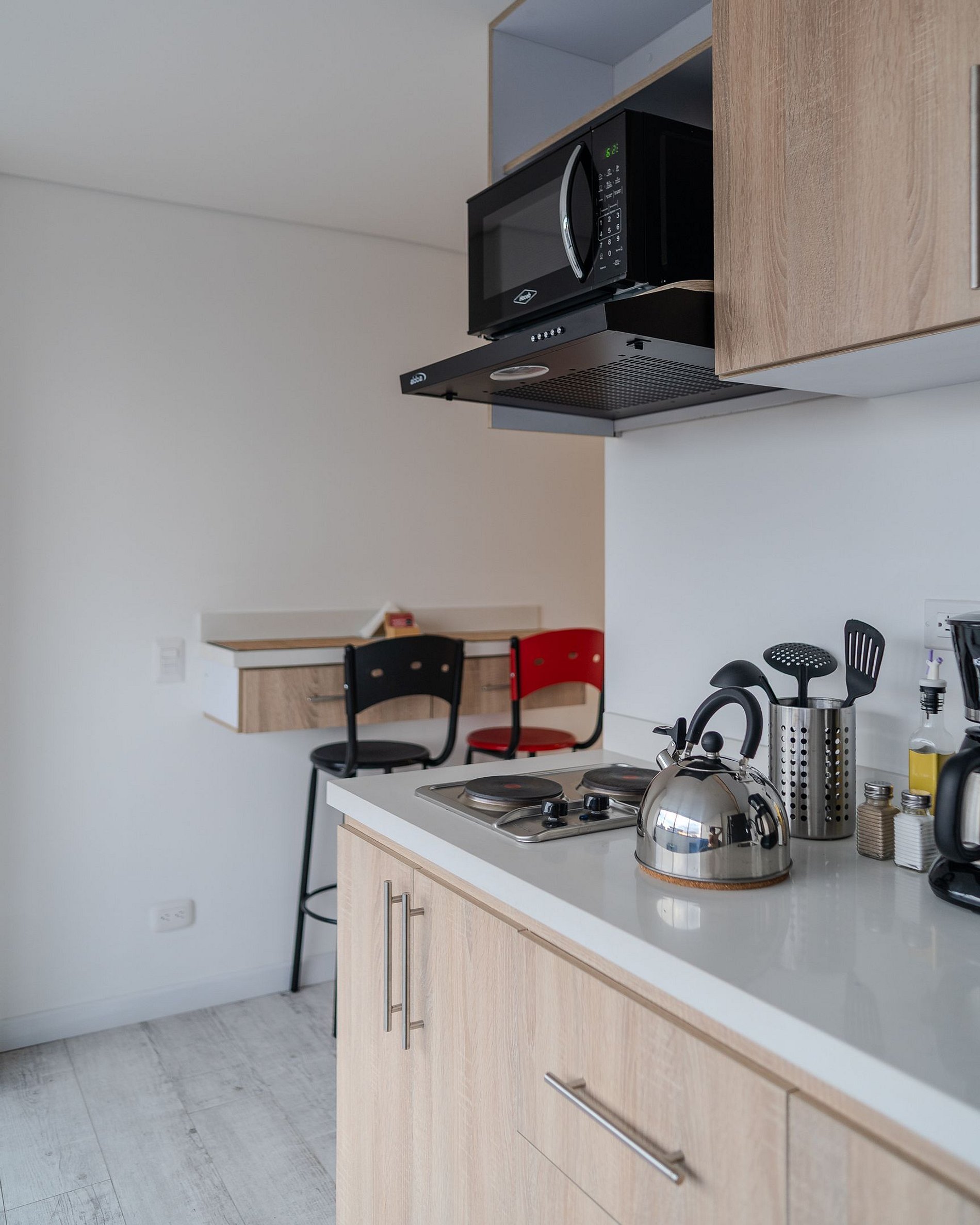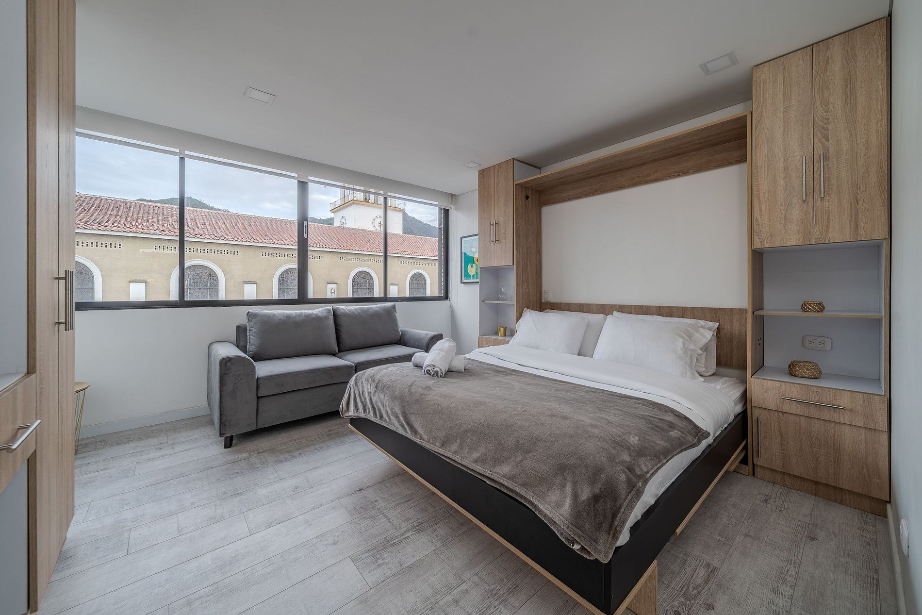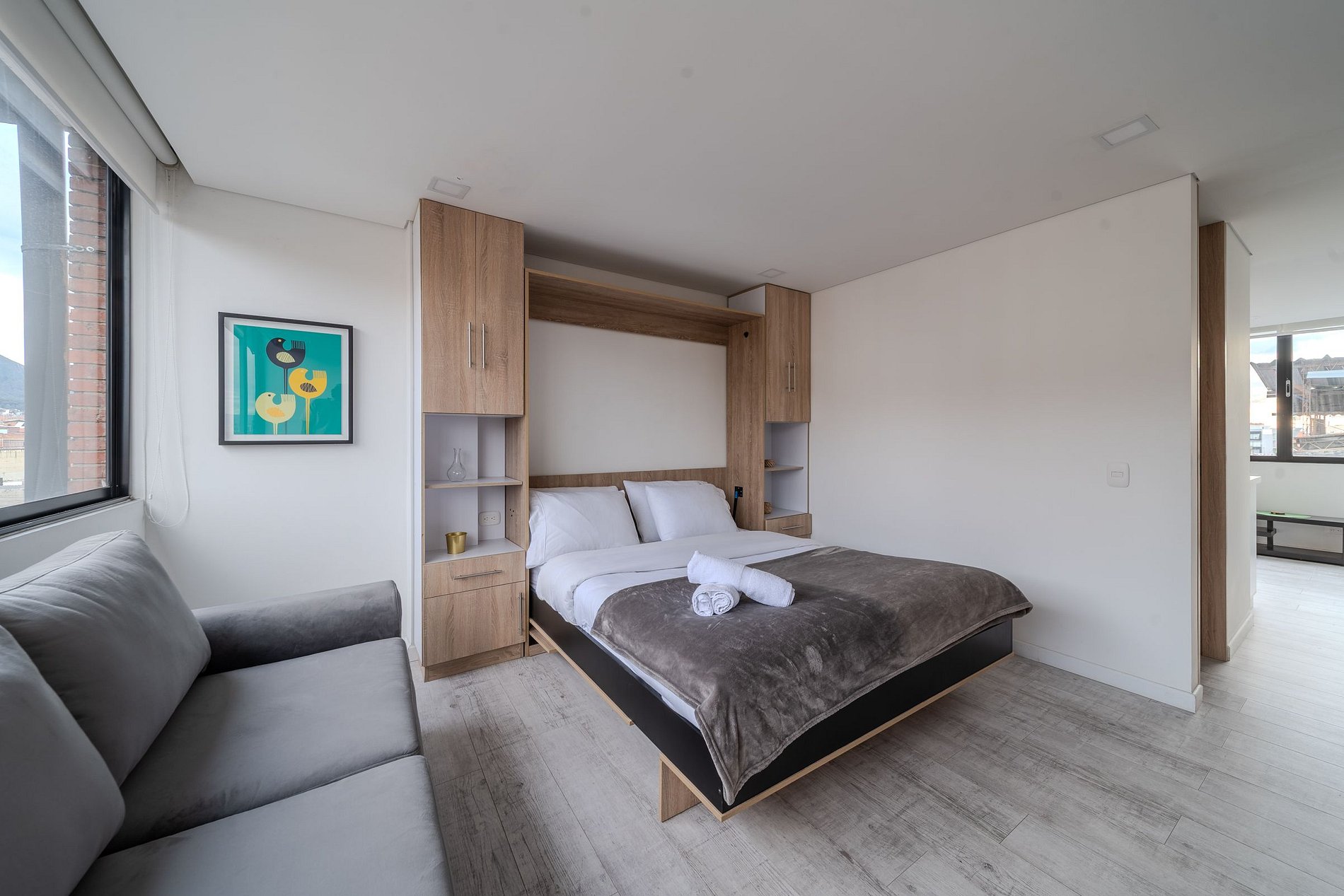 Atardecer 57 x Ahead offers 11 modern studio apartments in the heart of Teusaquillo, minutes away from the Movistar Arena, El Campín and Chapinero. Located in a strategic area with easy access to public transportation, universities, shopping centers and restaurants. Comfortable and well-designed spaces, ideal for travelers, managed by a professional team.