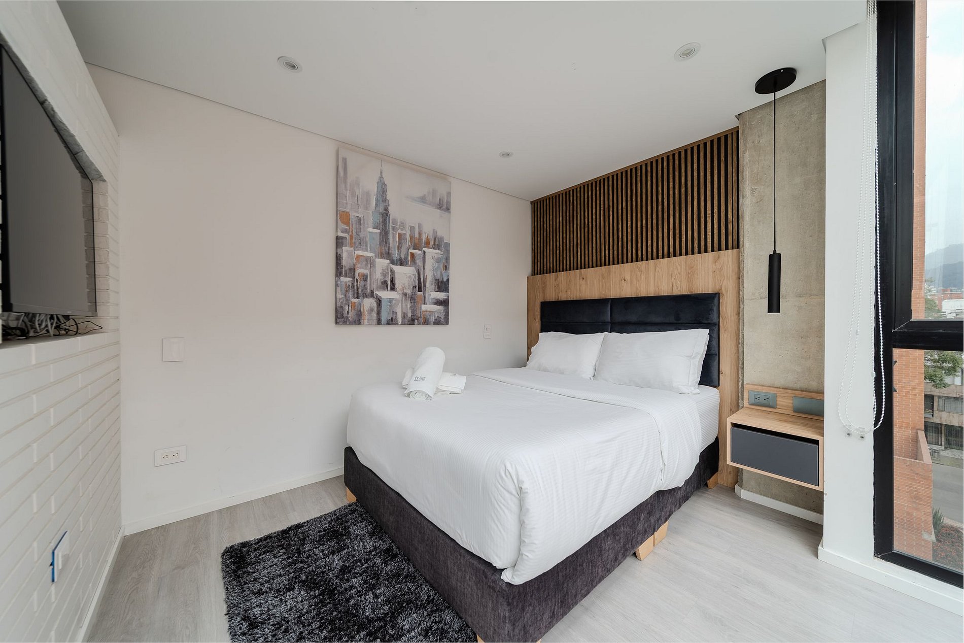 With a loft-like design and an efficient distribution in 25 m², the space integrates the bedroom with a cozy double bed. A bathroom just off the hallway and an open kitchenette with coffee maker, microwave oven, dishes and everything you need to feel at home. The building is private and secure, with electronic locks and surveillance cameras. Its location in Chapinero leaves you just steps from the El Campin Stadium and the Movistar Arena, surrounded by cafes, restaurants, stores and excellent transportation options. Ideal for those looking for comfort, style and an authentic connection to the city.