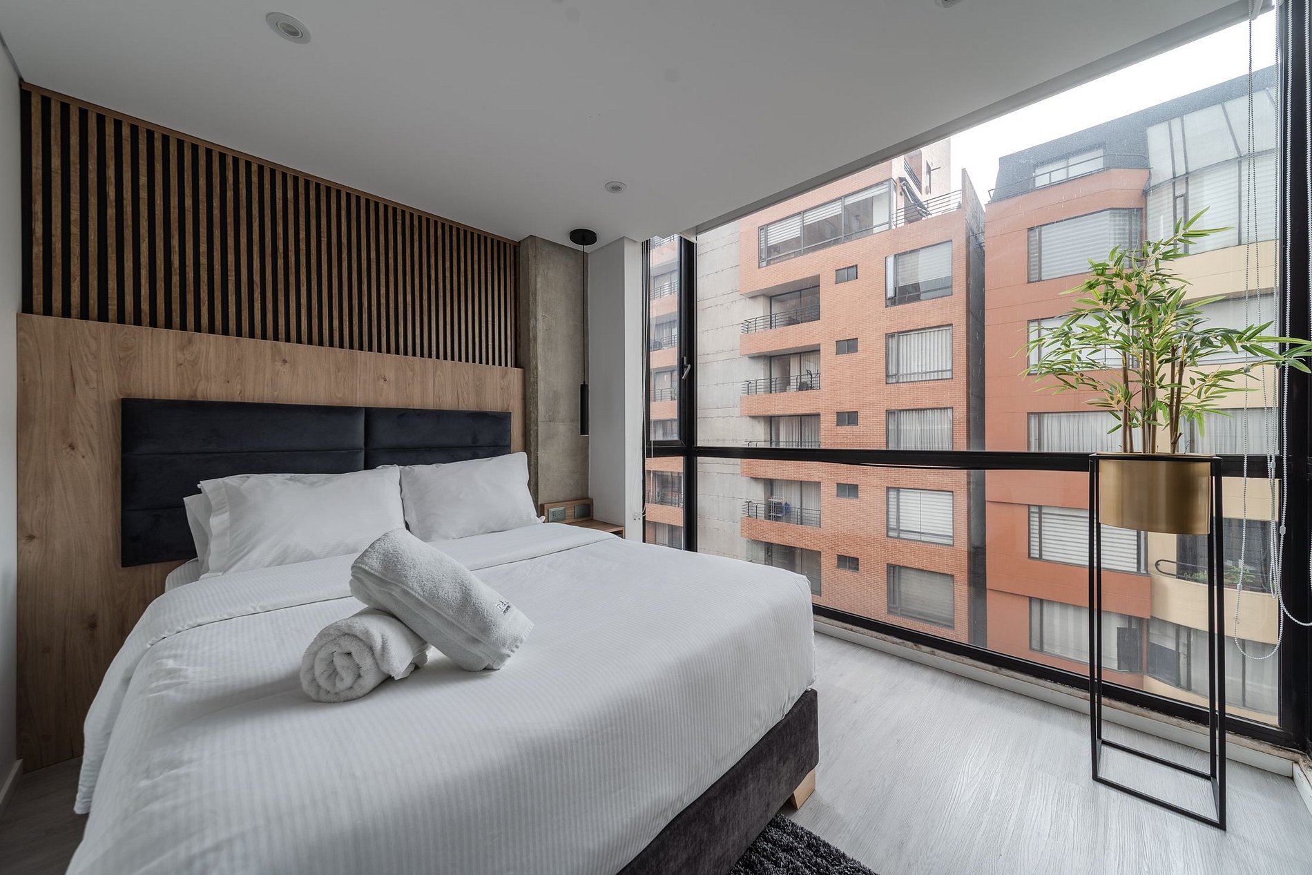 Enjoy a modern retreat in one of the most vibrant areas of Bogota. This loft combines design, comfort and strategic location. Relax in a double bed with soft sheets, work in total comfort thanks to the high-speed Wi-Fi and desk area, or prepare your favorite meals in the fully equipped kitchen. Plus, you'll have access to TV, hot water and laundry facilities in the building for longer stays.