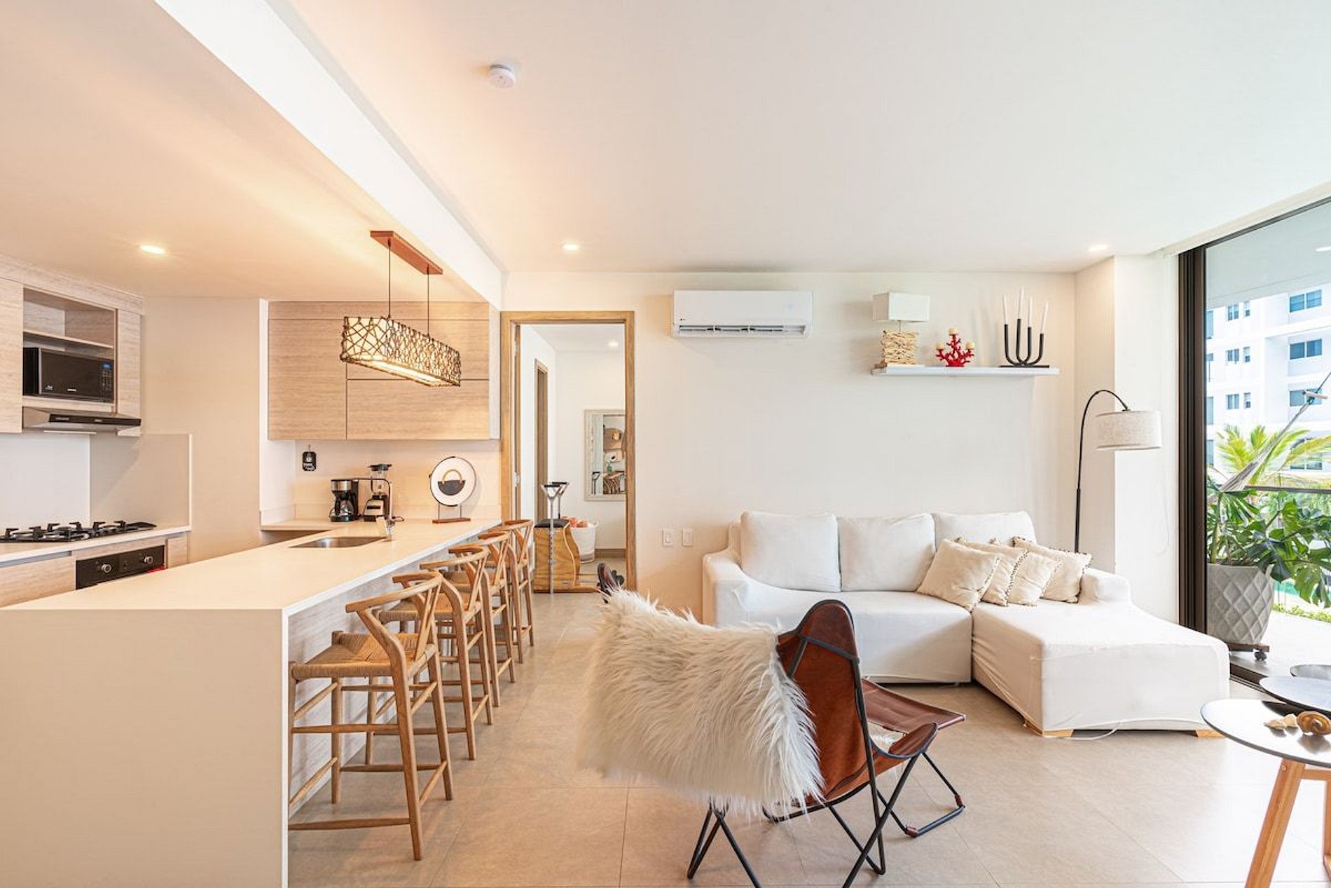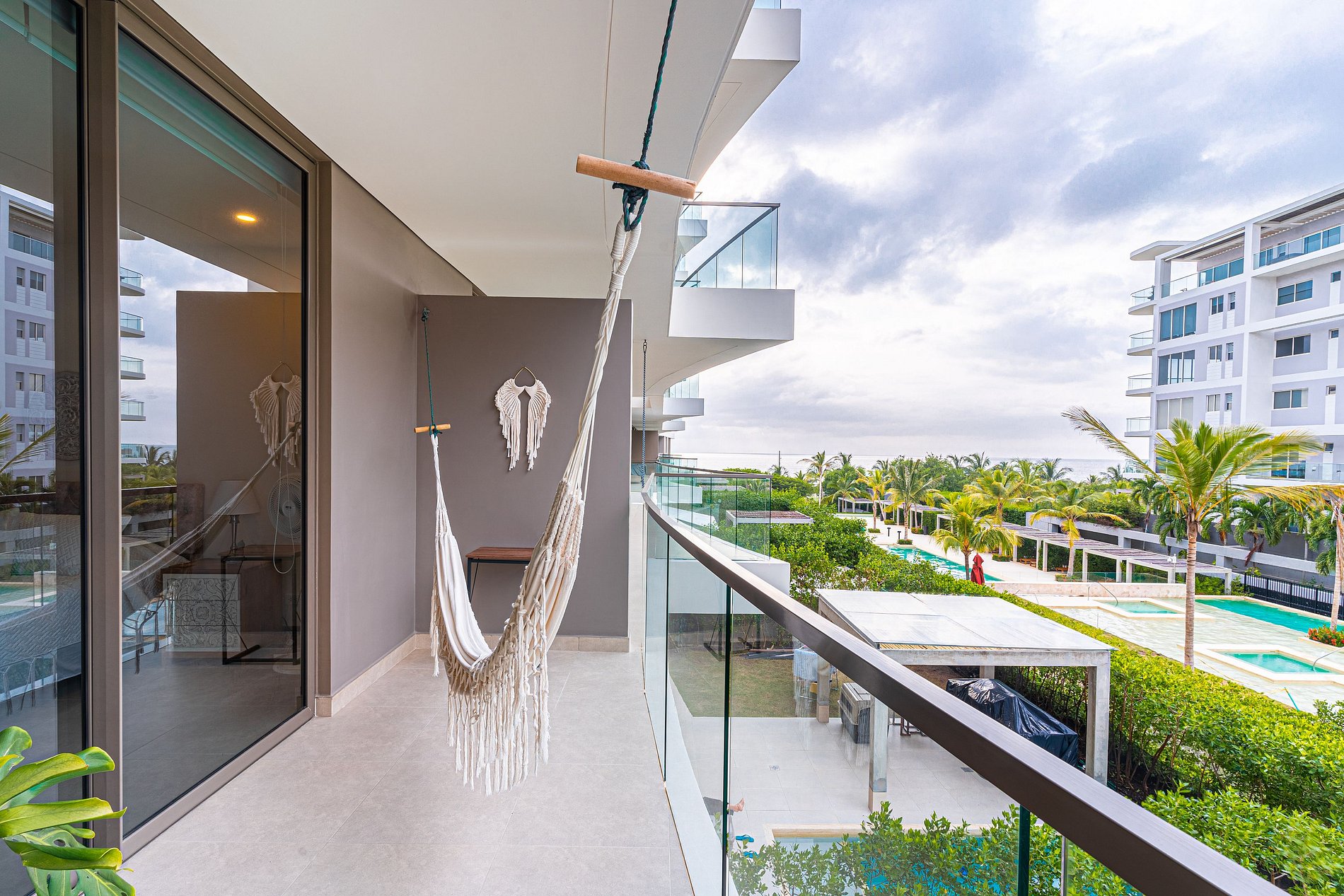 This condominium is located in the exclusive area of Serena del mar. A few meters from the quiet beaches of the place and a few minutes from the airport and the walled center. It is an oasis of peace.