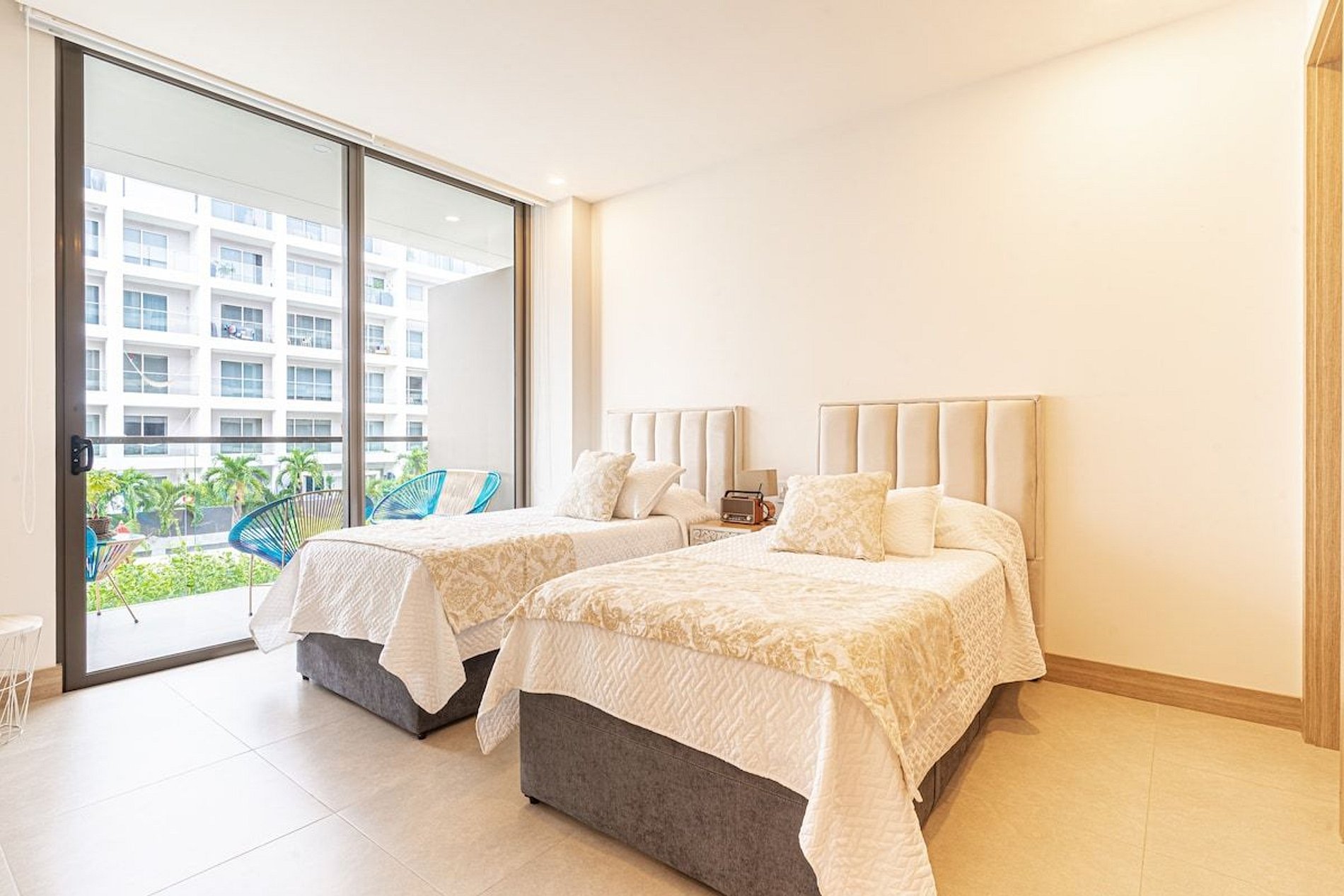 This amazing 2 bedroom 2 bathroom apartment in Cartagena is a unique place to enjoy a family vacation. In addition, the building has impressive social areas, including an outdoor pool, a jacuzzi to relax and enjoy the views, a gym, parking and a playground for the kids to have fun. The apartment also offers a direct exit to the beach, to enjoy the beautiful coastal scenery every day.