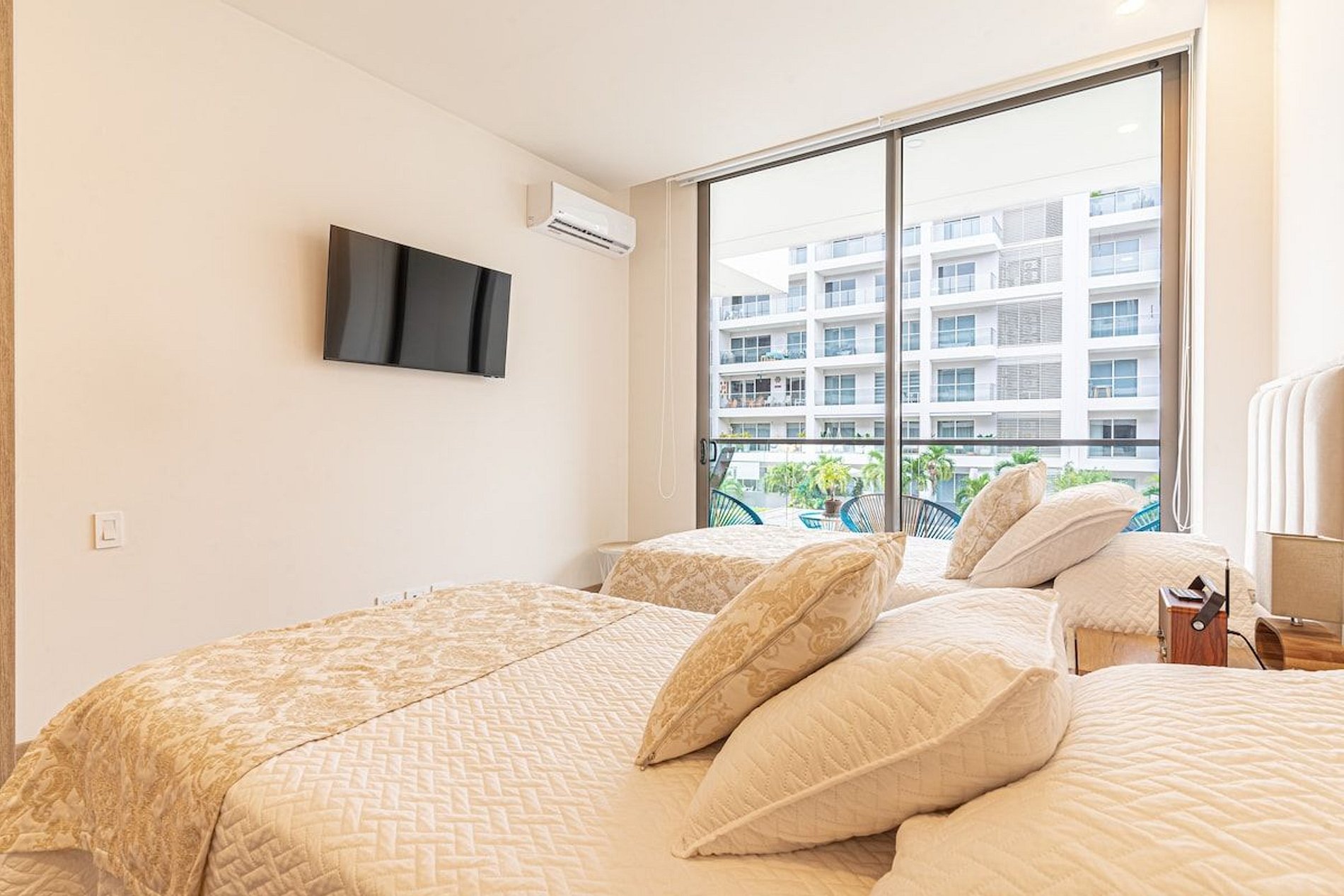 Guests can enjoy the social areas of the condominium. Swimming pool, jacuzzi, playground, gym, direct access to the beach, parking, security 24/7. For the use of tents and beach chairs there is an extra fee of $20,000 COP for rental.