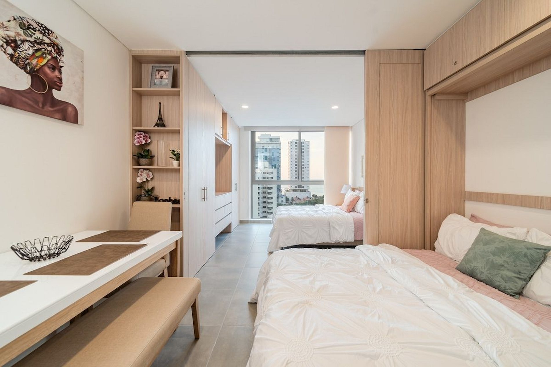 Este cálido apartamento, con su espectacular vista al mar y su proximidad a la playa, es la opción perfecta para quienes buscan una estancia llena de confort y serenidad en Santa Marta.