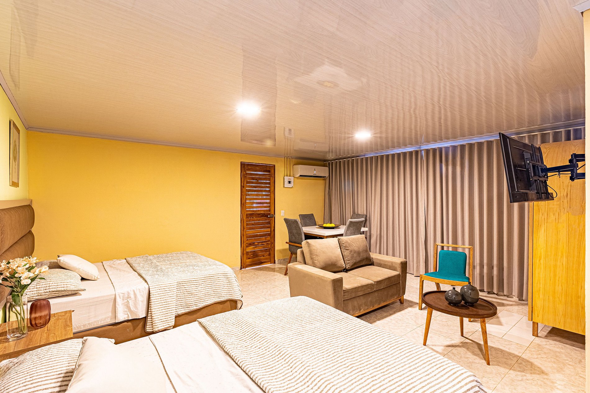 Este encantador estudio está diseñado para brindarte comodidad y funcionalidad durante tu estancia en Cartagena. El espacio cuenta con 2 camas dobles, una sala-comedor, un baño, y una cocina equipada con los utensilios básicos para que puedas preparar tus comidas. Además, el estudio está equipado con TV, WIFI, y aire acondicionado, asegurando que tengas todo lo necesario para una estancia confortable.
