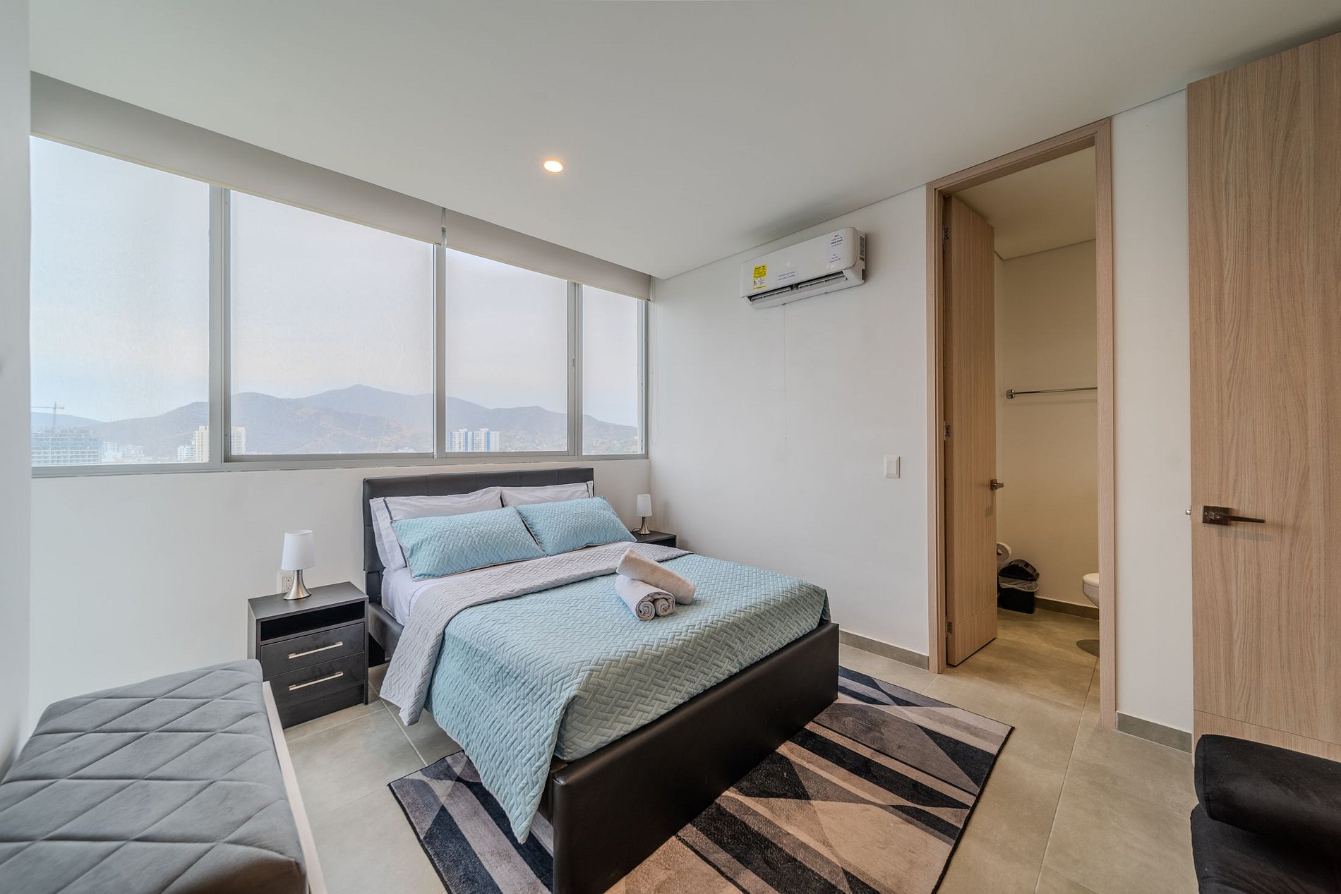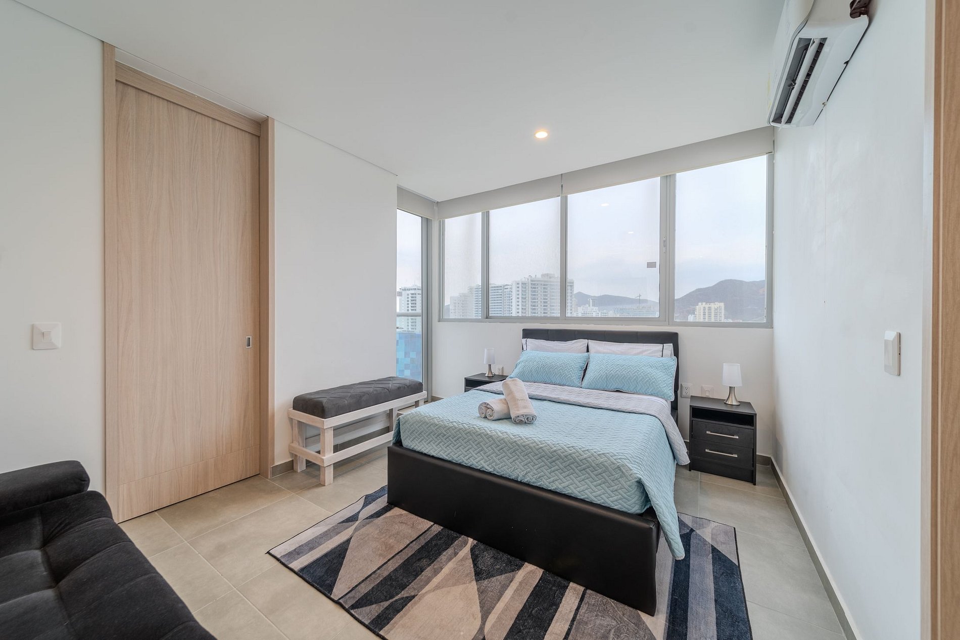 Déjate llevar por la tranquilidad en este acogedor apartamento de 2 habitaciones con capacidad para 7 personas, ubicado en el piso 9 a solo unos pasos de la Playa Salguero. Disfruta de sus balcones con vista, aire acondicionado en todas las estancias y las completas amenidades del edificio con piscina, jacuzzi, sauna y turco, ideales para desconectarte y descansar en Santa Marta.