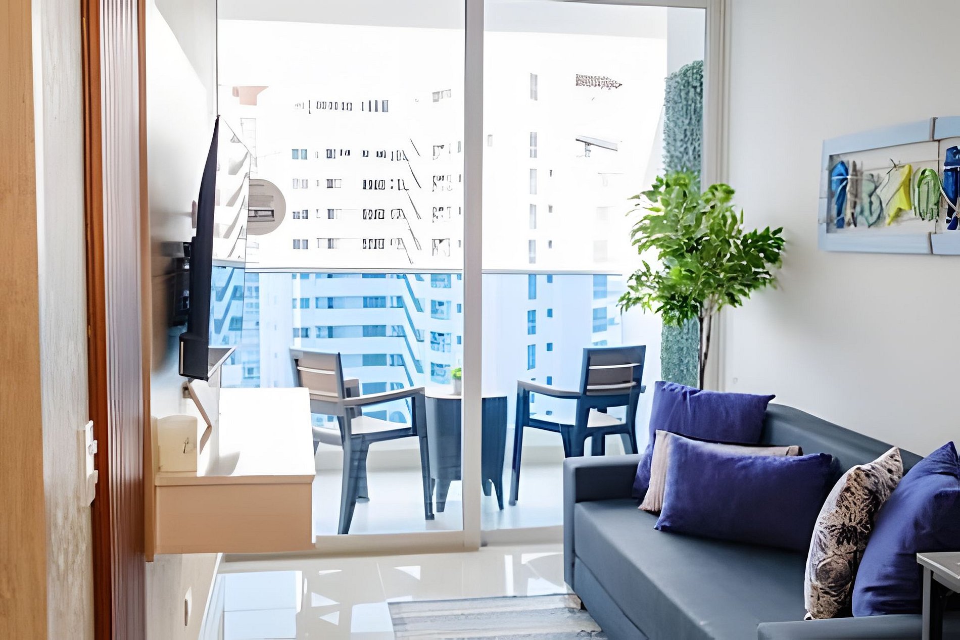 Disfruta de una estadía cómoda y relajante en este apartamento de una habitación frente al mar, ubicado en el exclusivo Edificio Reserva del Mar, con salida directa a la playa. Un espacio luminoso, bien decorado y pensado para el descanso, que cuenta con balcón con vista al mar, Wi-Fi, parqueadero, agua caliente, aire acondicionado, televisores y cerradura electrónica para self check-in, ideal para desconectarte y disfrutar del Caribe con total comodidad.
