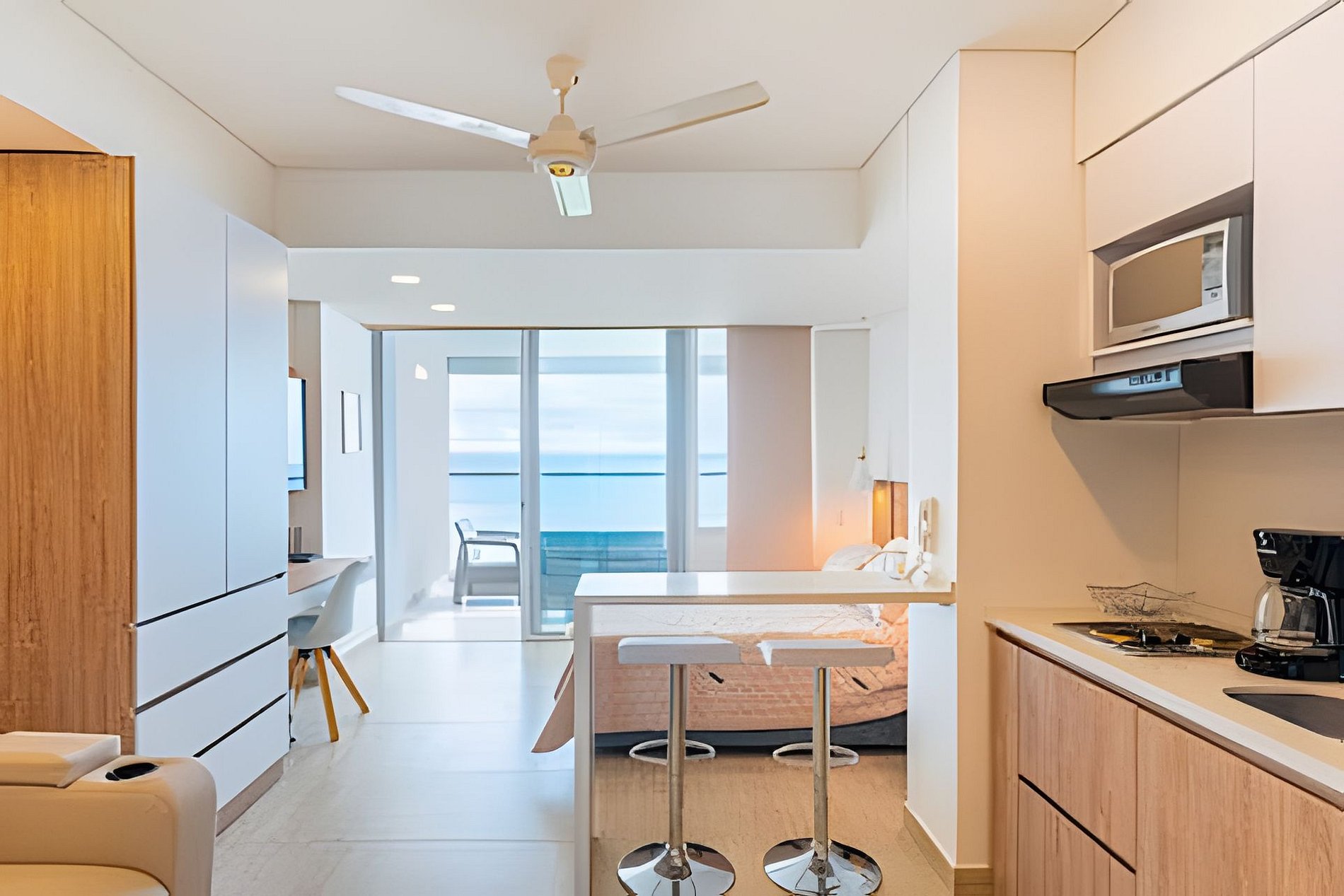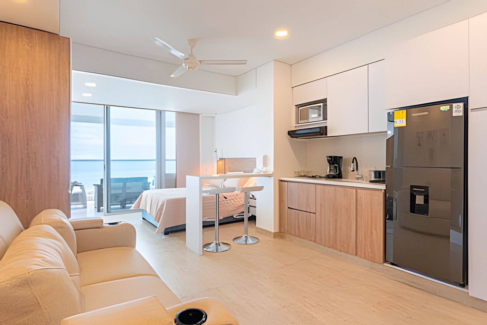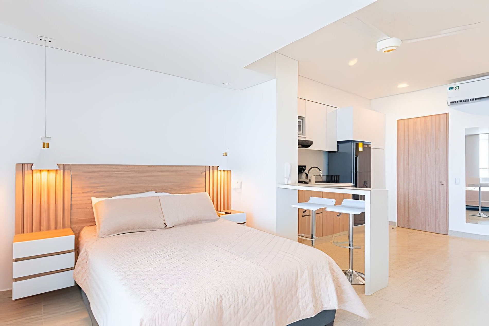 - Diseño Contemporáneo: Disfruta de la elegancia de un espacio nuevo con cocina completamente equipada, barra y un acogedor escritorio ideal para trabajar.