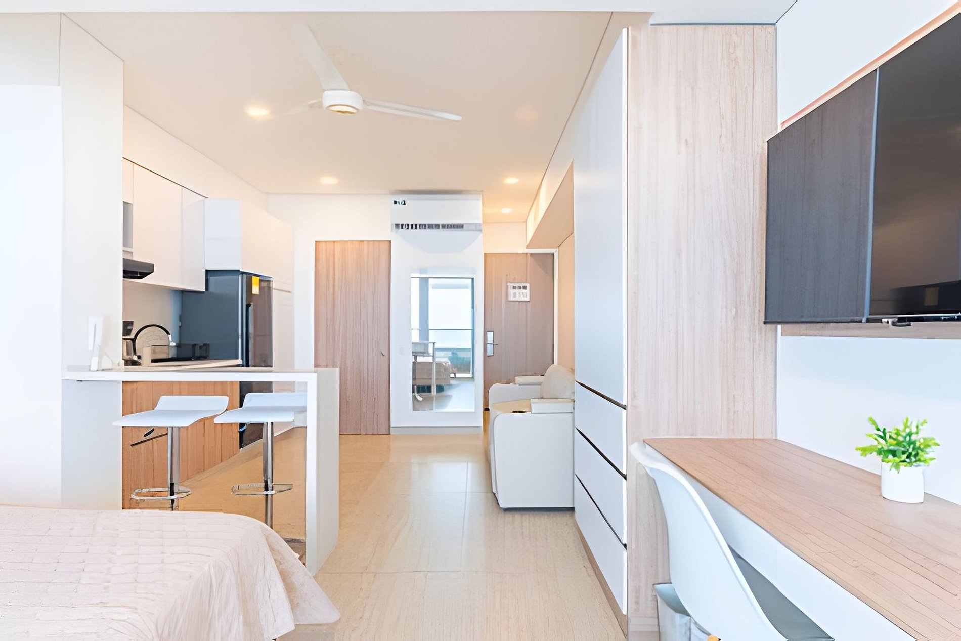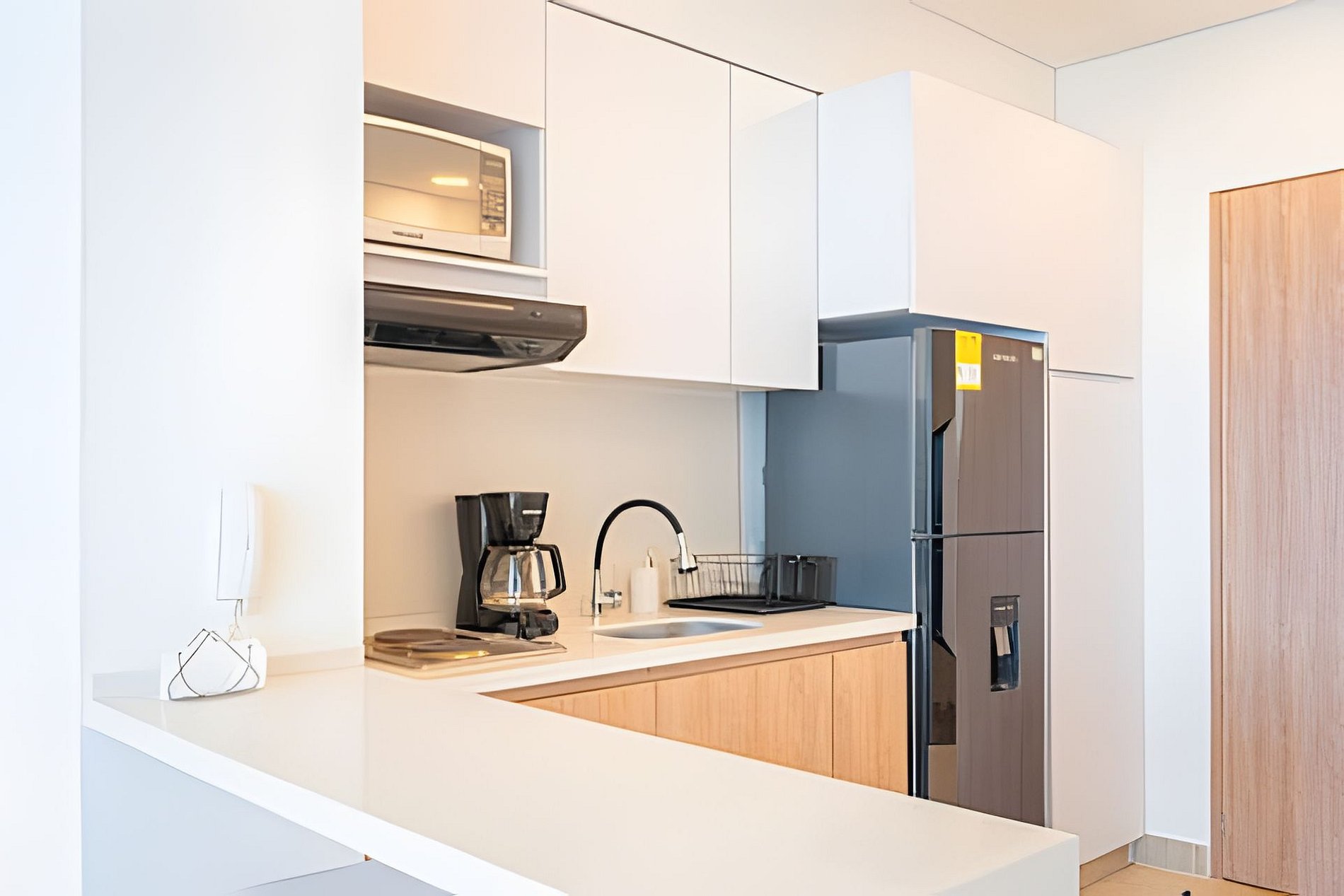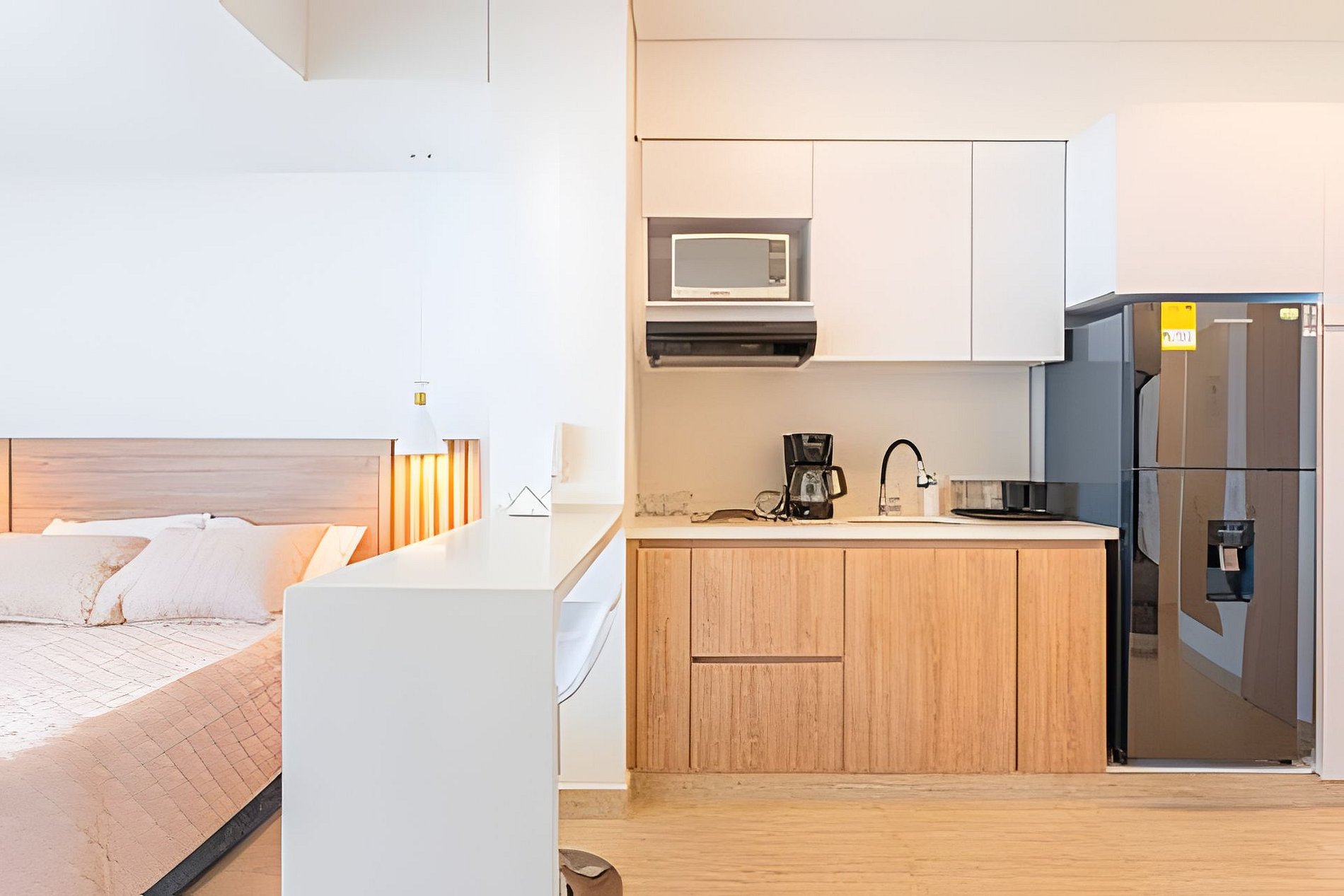 - Diseño Contemporáneo: Disfruta de la elegancia de un espacio nuevo con cocina completamente equipada, barra y un acogedor escritorio ideal para trabajar.