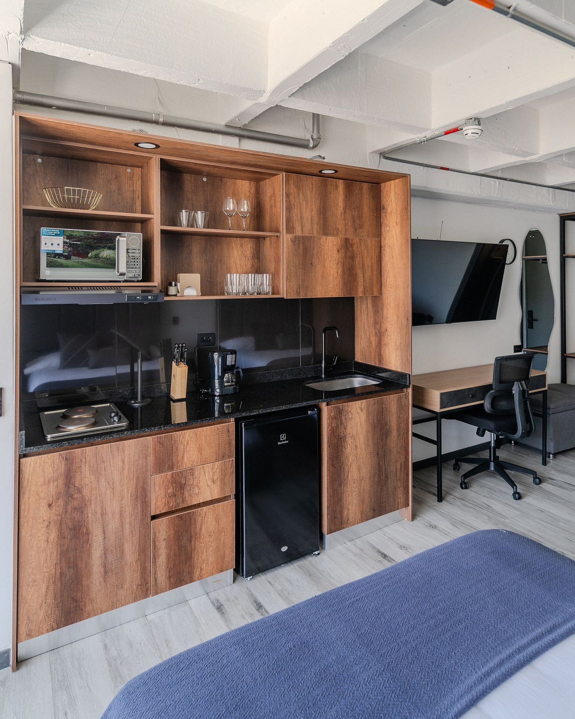 🛌 El Loft: Este acogedor apartamento tipo loft cuenta con dos cómodas camas de 1.40 x 1.90 cms, un baño social y una cocina completamente equipada 🍳. Además, ofrece un balcón con muebles que brinda una vista encantadora a la calle y la vegetación 🌳.