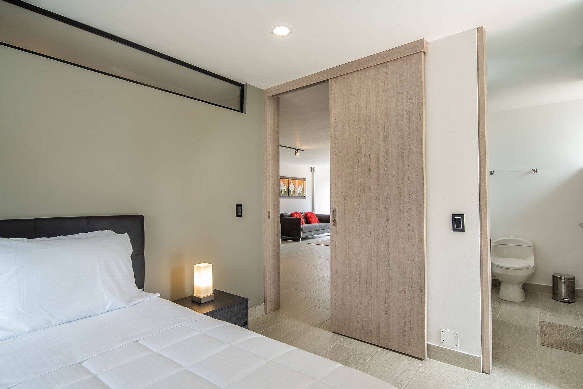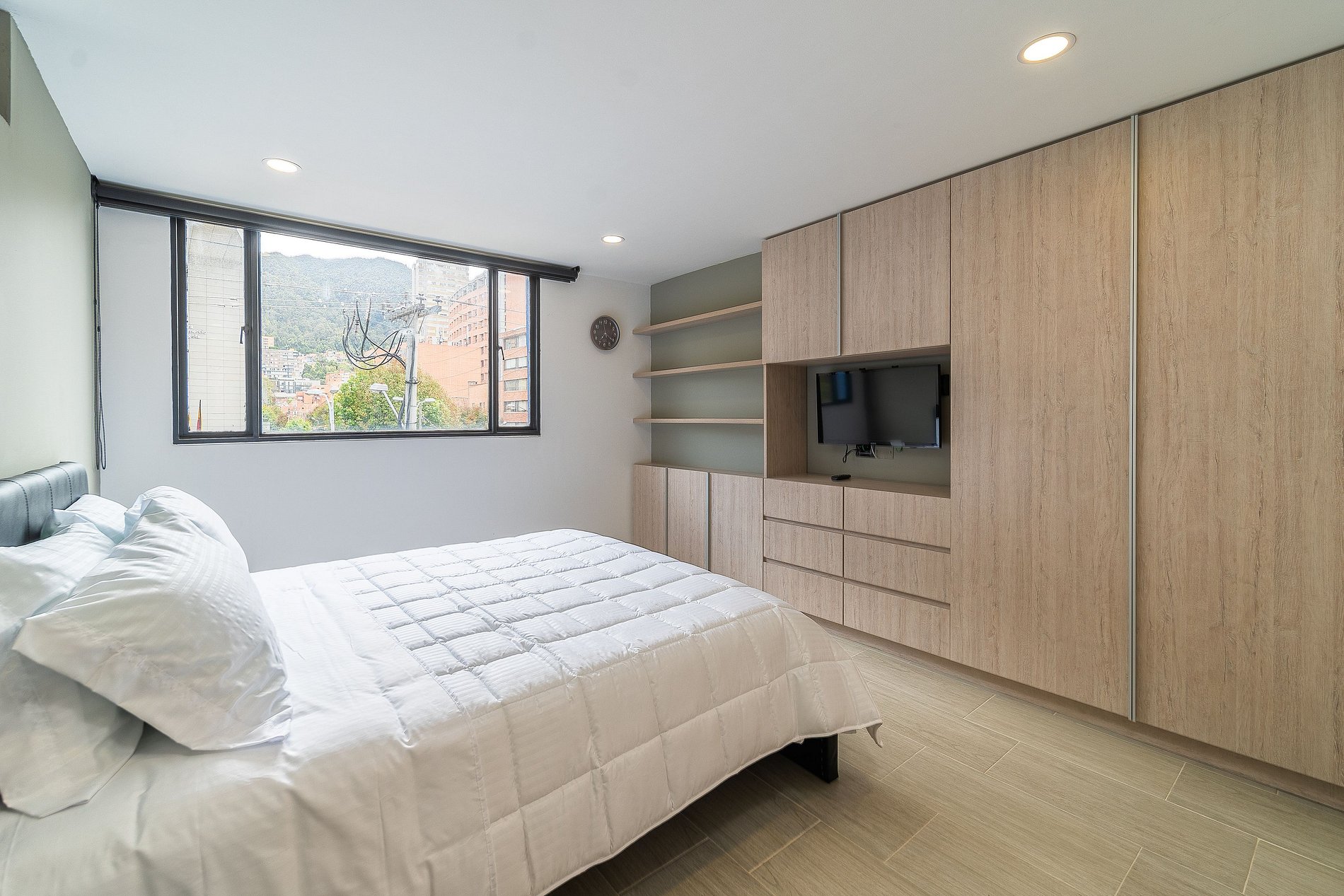 Este acogedor apartamento de 2 habitaciones con camas queen y baños privados, está ubicado en plena Novena, frente a la Cámara de Comercio, en una zona rodeada de bancos, cafés y excelentes restaurantes. Además, se encuentra a pocos minutos de la reconocida Zona G. El edificio cuenta con estacionamiento y seguridad 24/7.