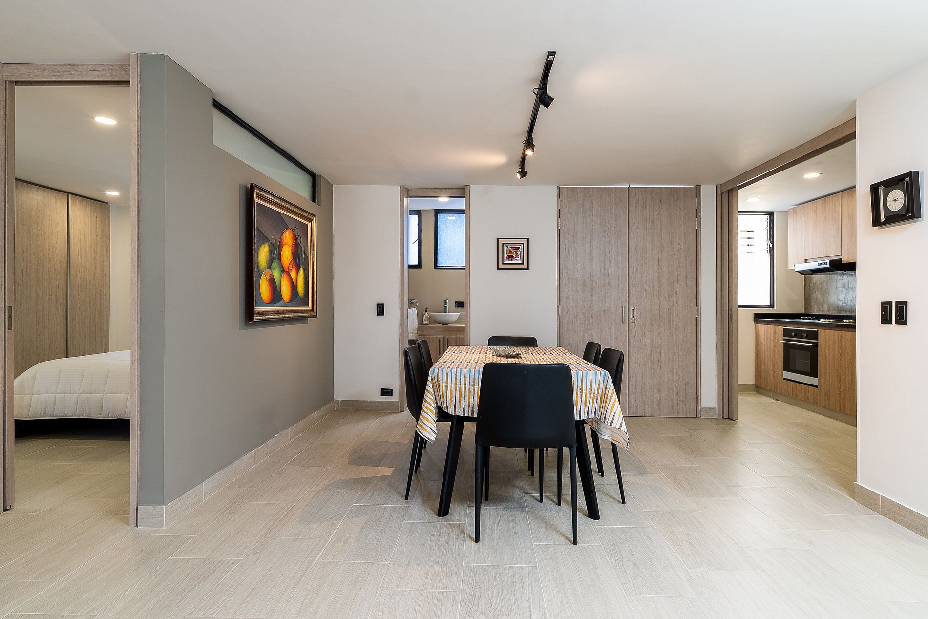 Este moderno apartamento de 100mts2, es ideal tanto para familias como para viajeros de negocios o estancias largas, ofreciendo un espacio amplio y confortable. Cuenta con una luminosa sala-comedor con mesa, perfecta para disfrutar de tus comidas, y una cocina abierta completamente equipada, ideal para preparar tus platos favoritos. Además, dispone de dos habitaciones espaciosas, cada una con camas queen y baño privado, garantizando un descanso placentero.