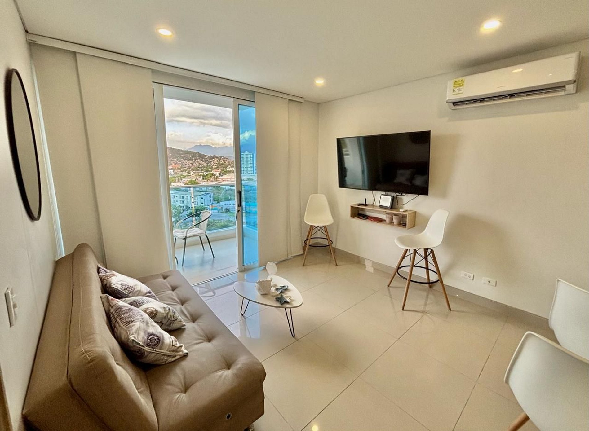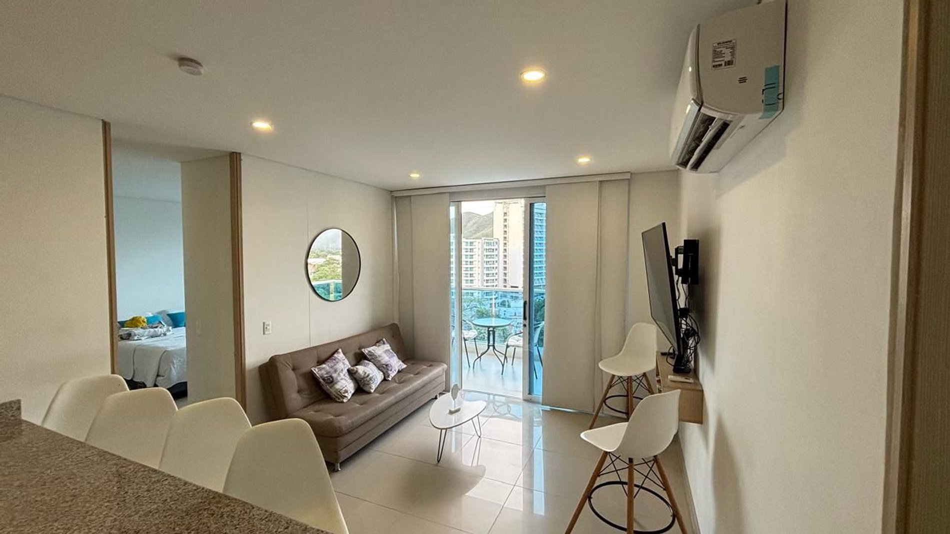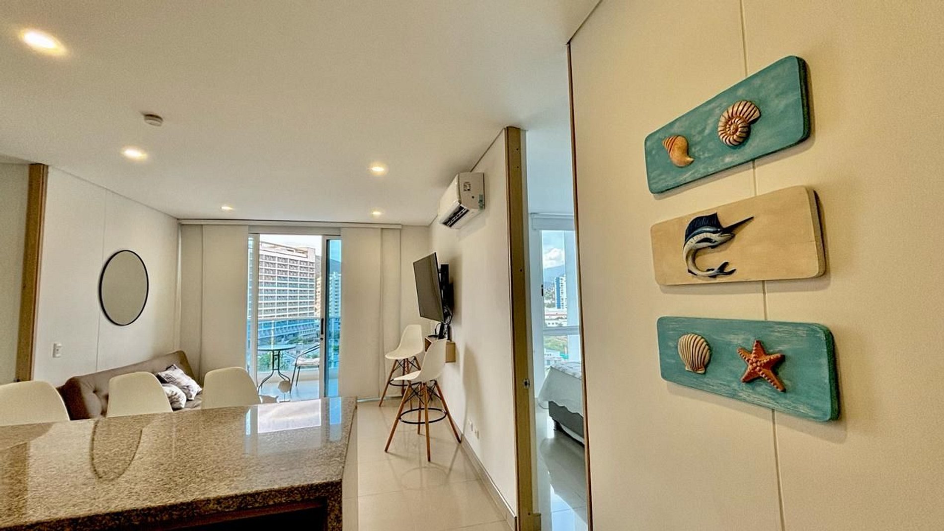 Bienvenido a tu paraíso en Santa Mart. Disfruta de una estancia inolvidable en este moderno y acogedor apartamento que esta en un edificio con salida directa a la playa y que ofrece una variedad de amenidades de lujo, perfectas para unas vacaciones inolvidables. Relájate en la piscina, disfruta de un café en tu balcón con vistas laterales al mar y las montañas , o saborea una deliciosa comida en el restaurante privado con servicio a la piscina del edificio.