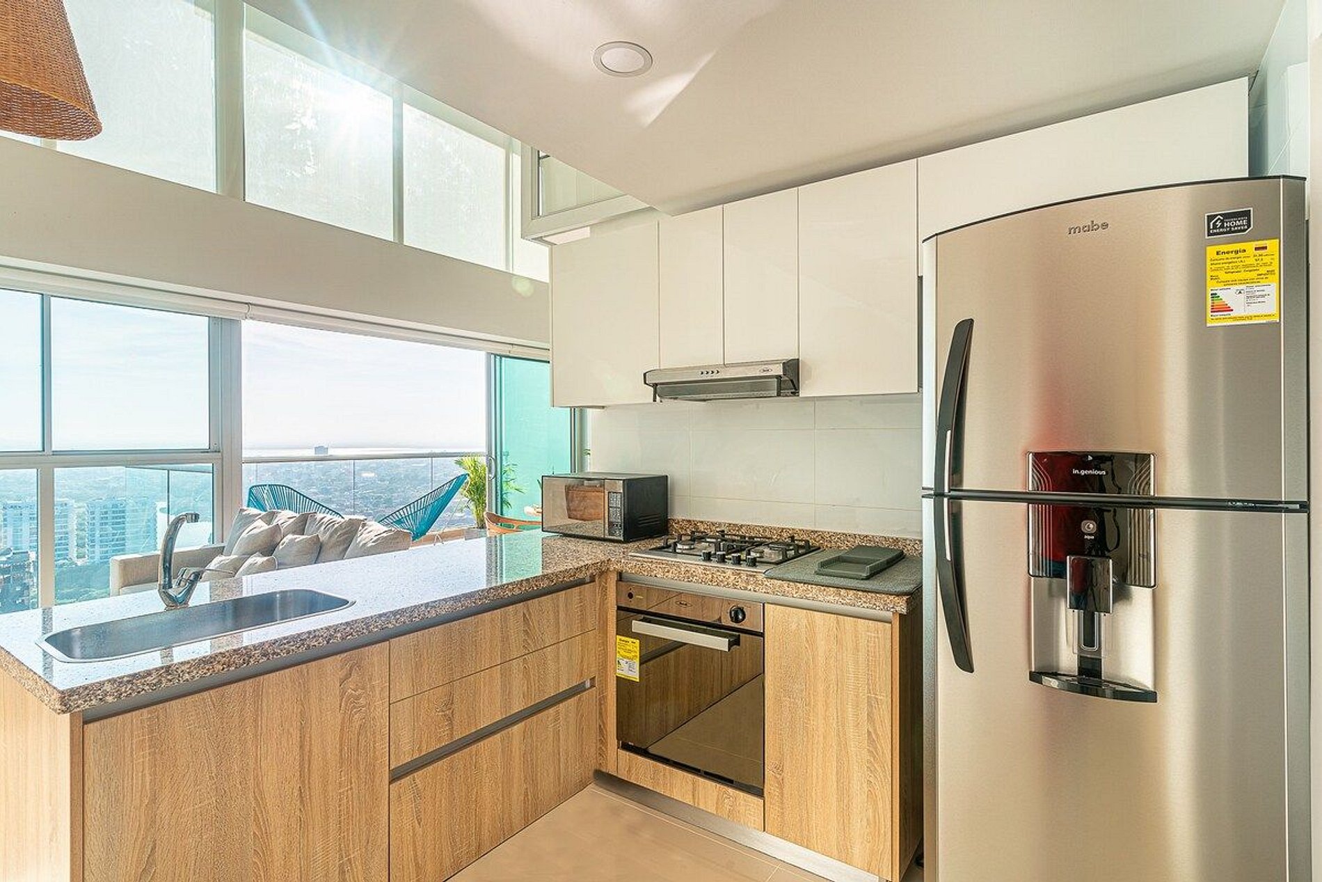 La cocina está completamente equipada con modernos electrodomésticos y utensilios para que puedas preparar tus comidas favoritas.