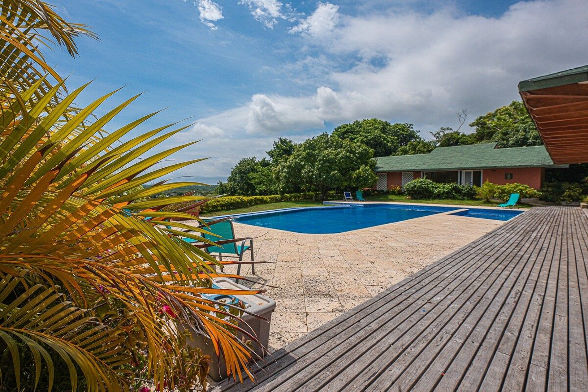 La habitación Principal y la auxiliar #1 están en segundo piso de la casa principal. La habitación Auxiliar #2 se encuentra en la casa auxiliar en el primer piso y las habitaciones #3 y 4 en segunda casa auxiliar. La habitación principal y habitación auxiliar #1 cuentan con baño interno, habitación auxiliar #2 cuenta con 2 baños en la zona social de la casa auxiliar y las habitaciones auxiliares #3 y 4 comparten baño. Adicionalmente la zona de empleados cuenta con un baño y en la zona húmeda hay un baño completo. La casa tiene piscina, parque infantil, duchas y baños en zona social, parqueadero, piscina de niños.