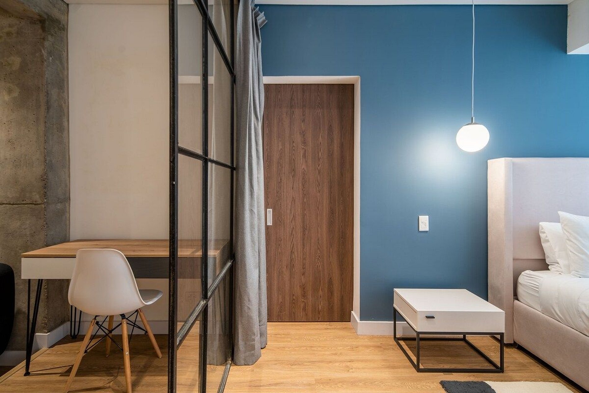 Con un estilo minimalista y acabados modernos, este apartamento tipo loft de 43,63 m² es perfecto para una o dos personas. La habitación abierta incluye una cómoda cama king size y una distribución funcional que integra la sala-comedor y una cocina totalmente equipada con nevera, estufa, horno microondas, horno tostador y utensilios para que cocines como en casa.