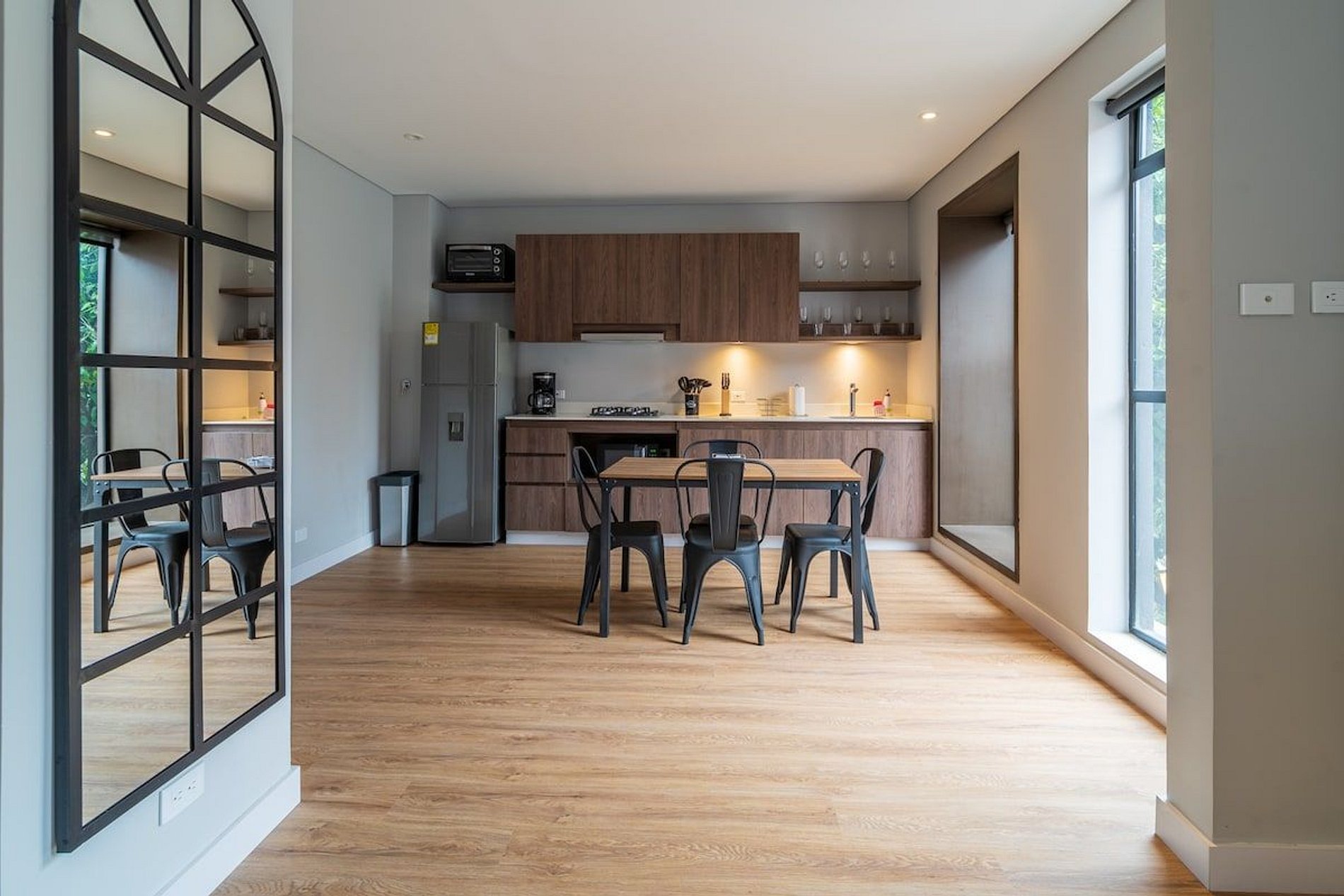 Este apartamento de 45.49m2 tiene 1 habitación independiente y está equipado con una acogedora cama doble, ofreciendo un ambiente íntimo y relajante. Con una capacidad máxima de 2 personas, el apartamento cuenta con una cocina totalmente equipada, que incluye nevera, estufa, microondas, tostadora, y todos los utensilios necesarios para preparar tus comidas favoritas.