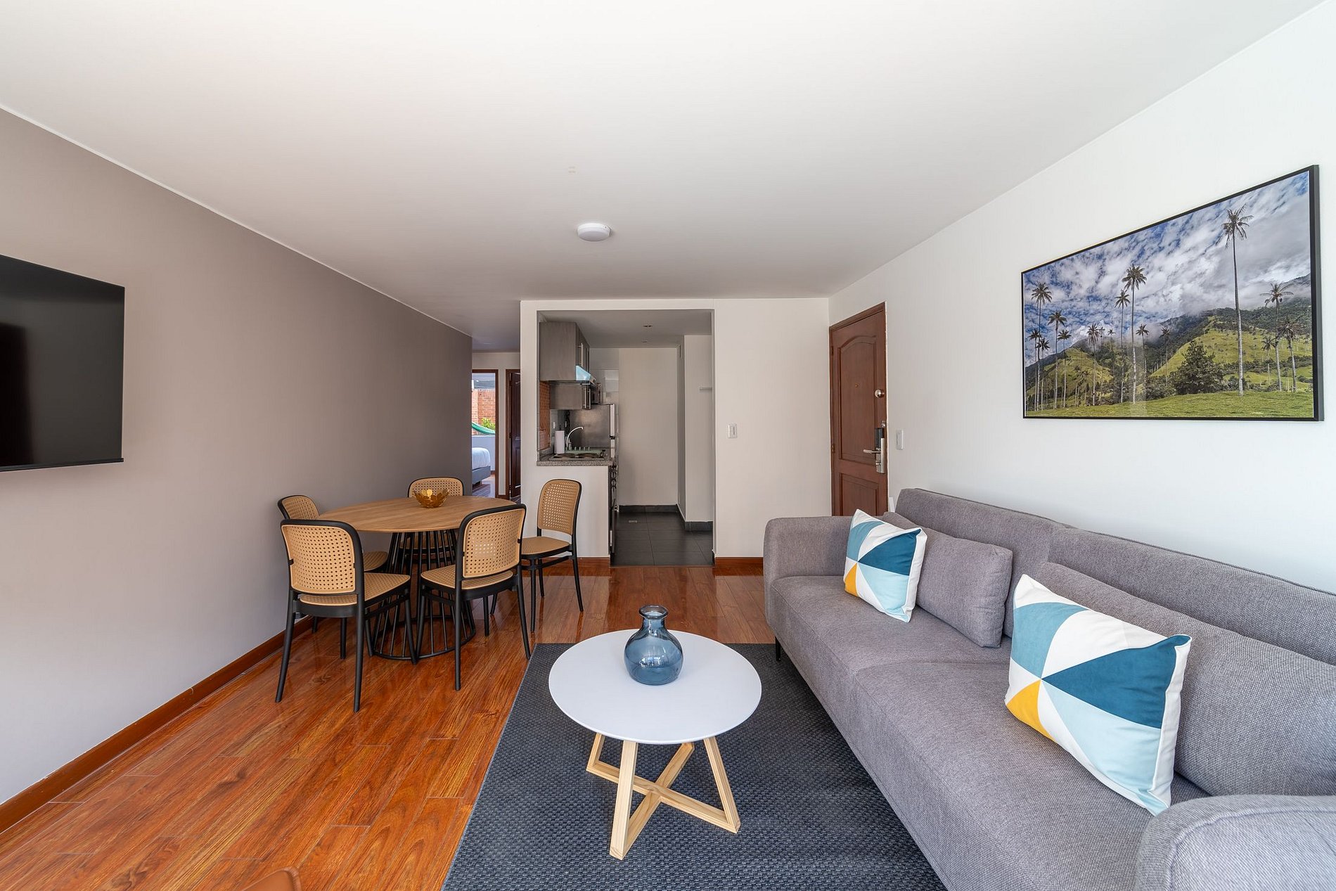 El corazón del apartamento es su acogedora sala y comedor, iluminada naturalmente y ventilada, brindando un espacio perfecto para relajarte o compartir con amigos y familia. La cocina integral está equipada con todo lo necesario para estadías largas, ideal para cocinar tus recetas favoritas. Encontrarás desde una elegante loza hasta los utensilios necesarios para disfrutar de una experiencia gastronómica completa.