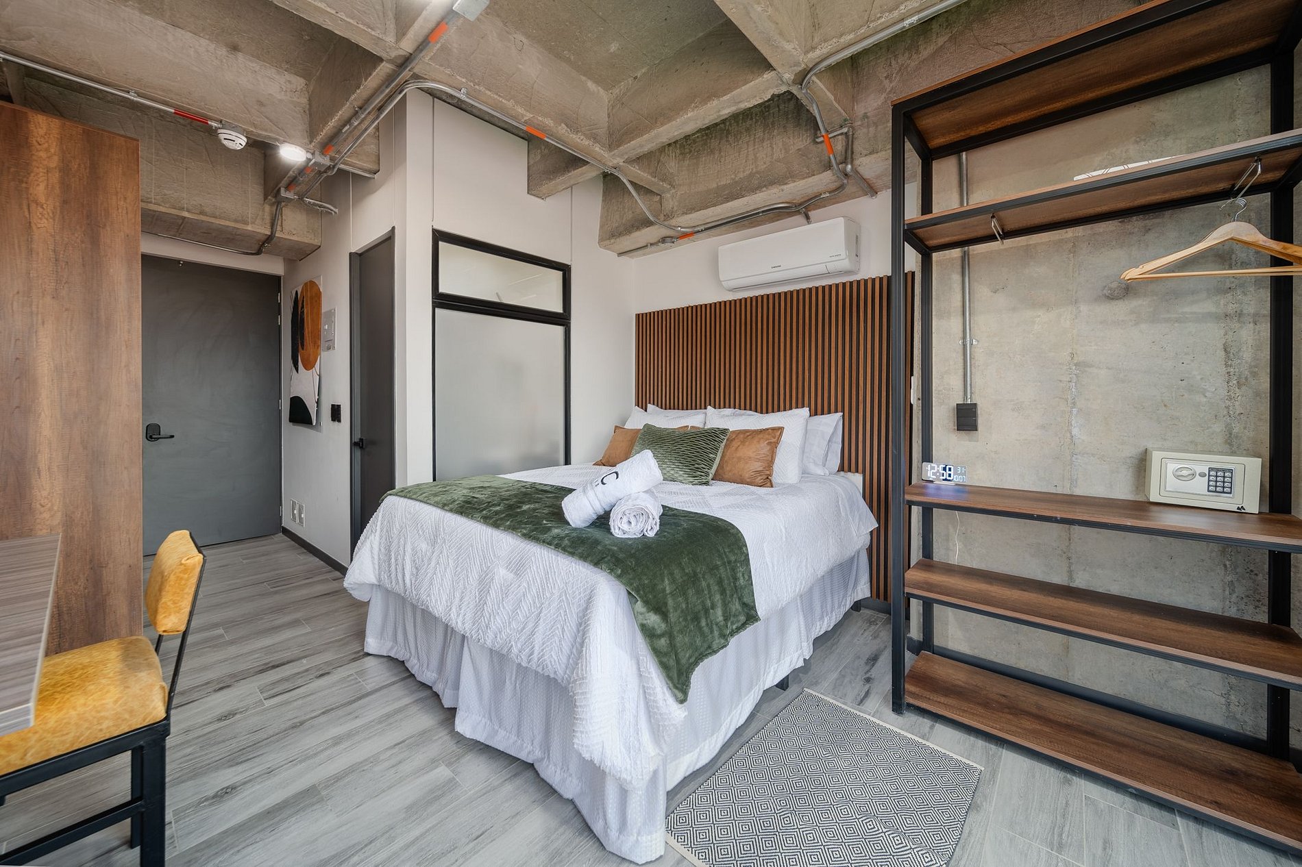 El Loft: Acogedor apartamento tipo loft con cama queen, perfecto para una estancia cómoda. Dispone de un baño social y una cocina completamente equipada.