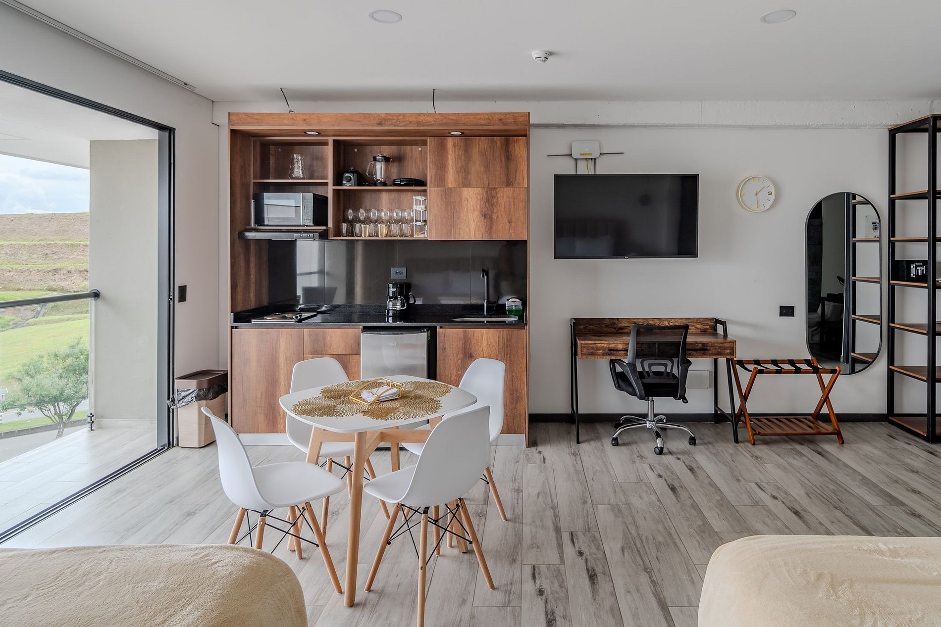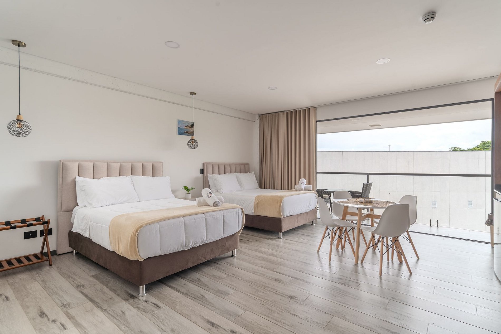 El Loft: Este acogedor apartamento tipo loft cuenta con dos cómodas camas dobles en la misma habitación. Dispone de un baño social, una cocina totalmente equipado y balcón.