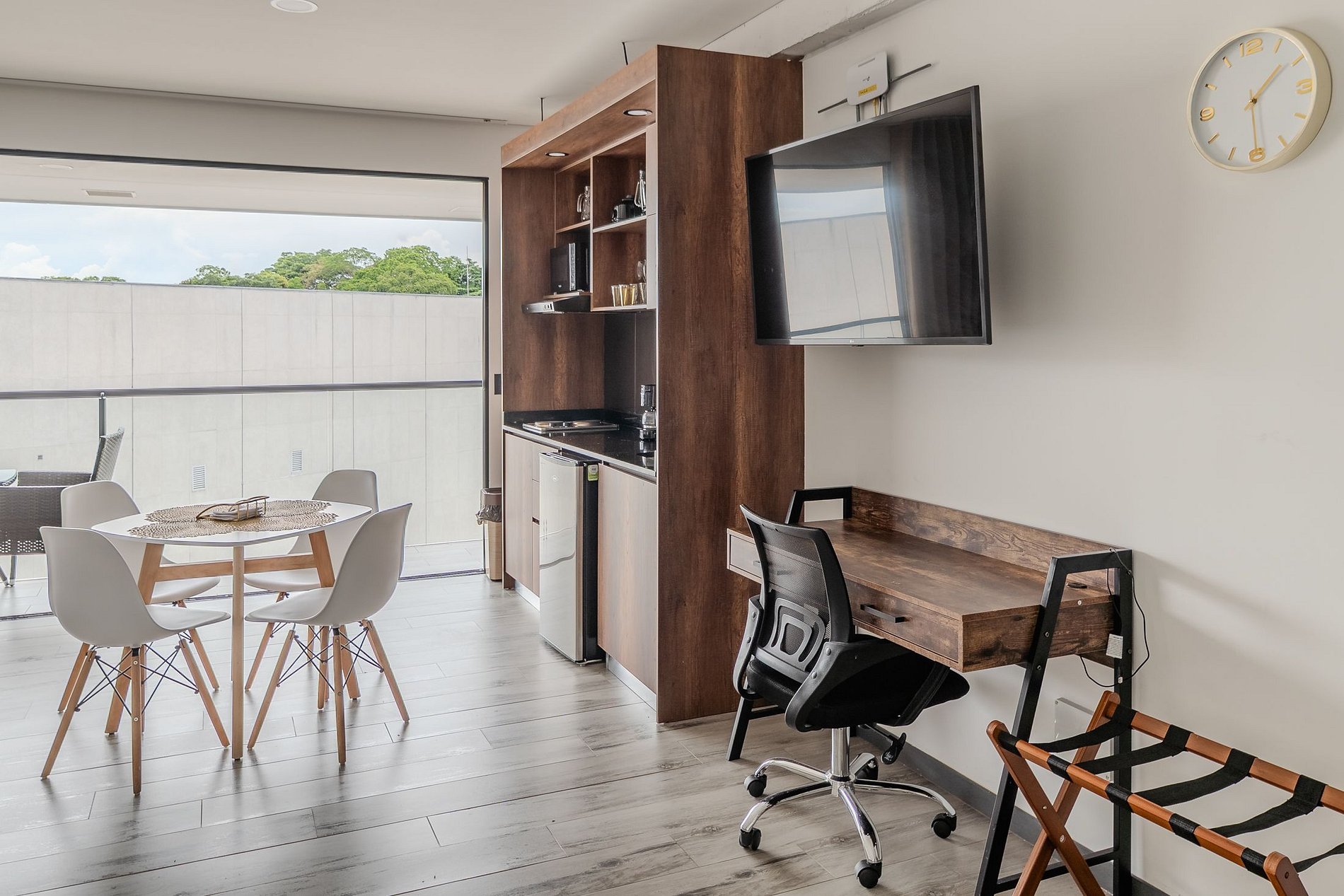 Comodidades Incluidas: Disfruta de aire acondicionado, WiFi, TV, una mesa de comedor pequeña y una zona de trabajo.