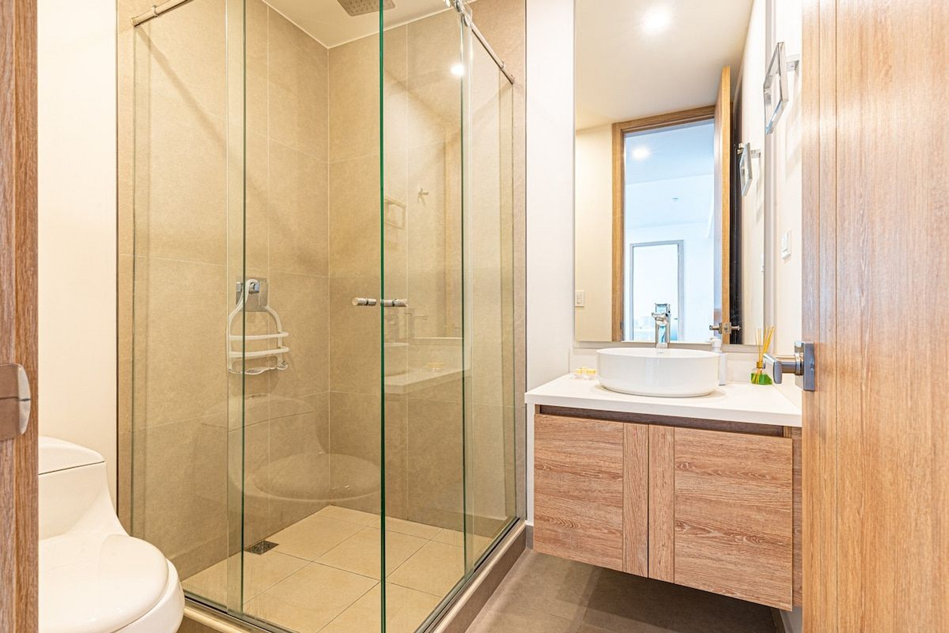 El apartamento cuenta con 3 habitaciones. La habitación principal tiene 2 camas dobles con baño privado. Y las habitaciones auxiliares tienen 2 camas semi dobles cada una. La cocina viene totalmente equipada, con una sala y balcón con una hermosa vista.