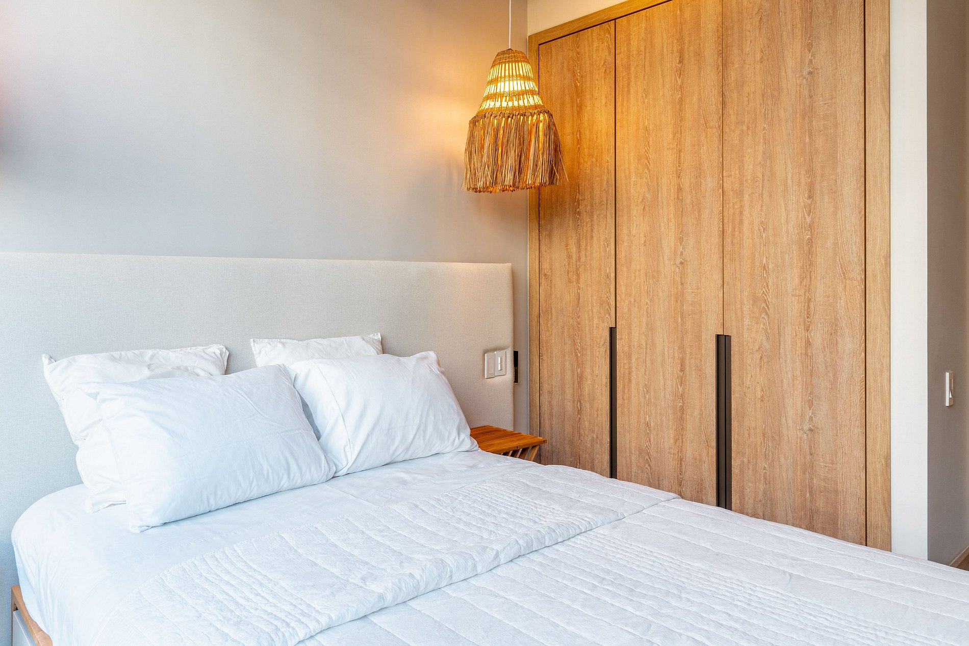 El apartamento también cuenta con una sala-comedor , una cocina abierta completamente equipada , dos baños y una decoracion lujosa. El apartamento está totalmente amoblado y equipado con todo lo necesario, incluso para estadías largas, ofreciendo comodidad y funcionalidad en cada detalle. Las amenidades incluyen parqueadero , agua caliente , aire acondicionado , TV , y WiFi, asegurando que tengas todo lo necesario para una estancia perfecta.