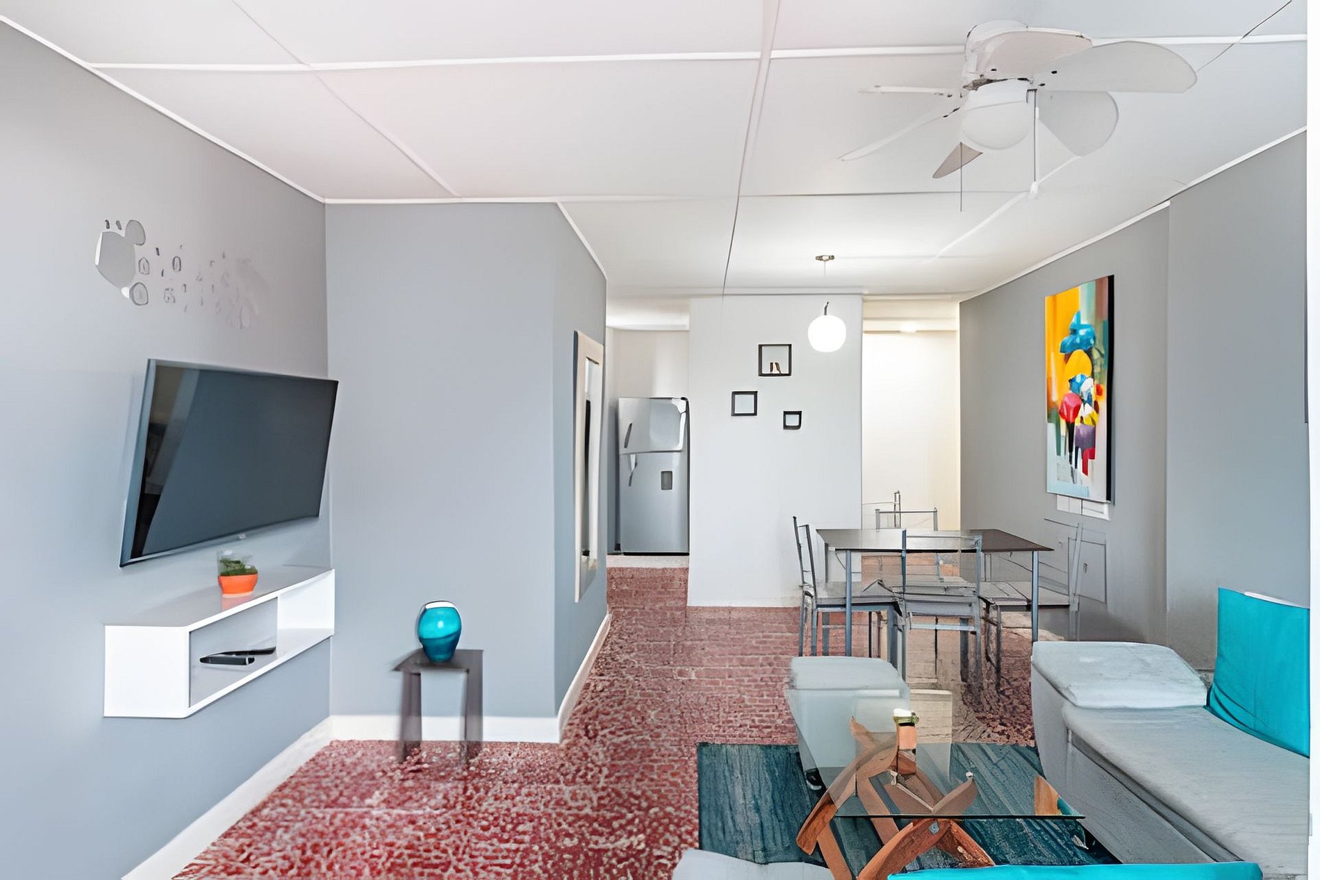 Cuenta con una sala bellamente diseñada con TV y servicios de streaming y una cocina totalmente equipada con zona de lavado, nevera, estufa y utensilios de cocina para preparar cualquier comida con comodidad. La habitación principal tiene cama doble, mientras que la secundaria ofrece una litera con dos camas individuales. Además, dispone de un baño privado en la habitacion principal y un baño social, aire acondicionado y ventilador de techo para mayor confort.