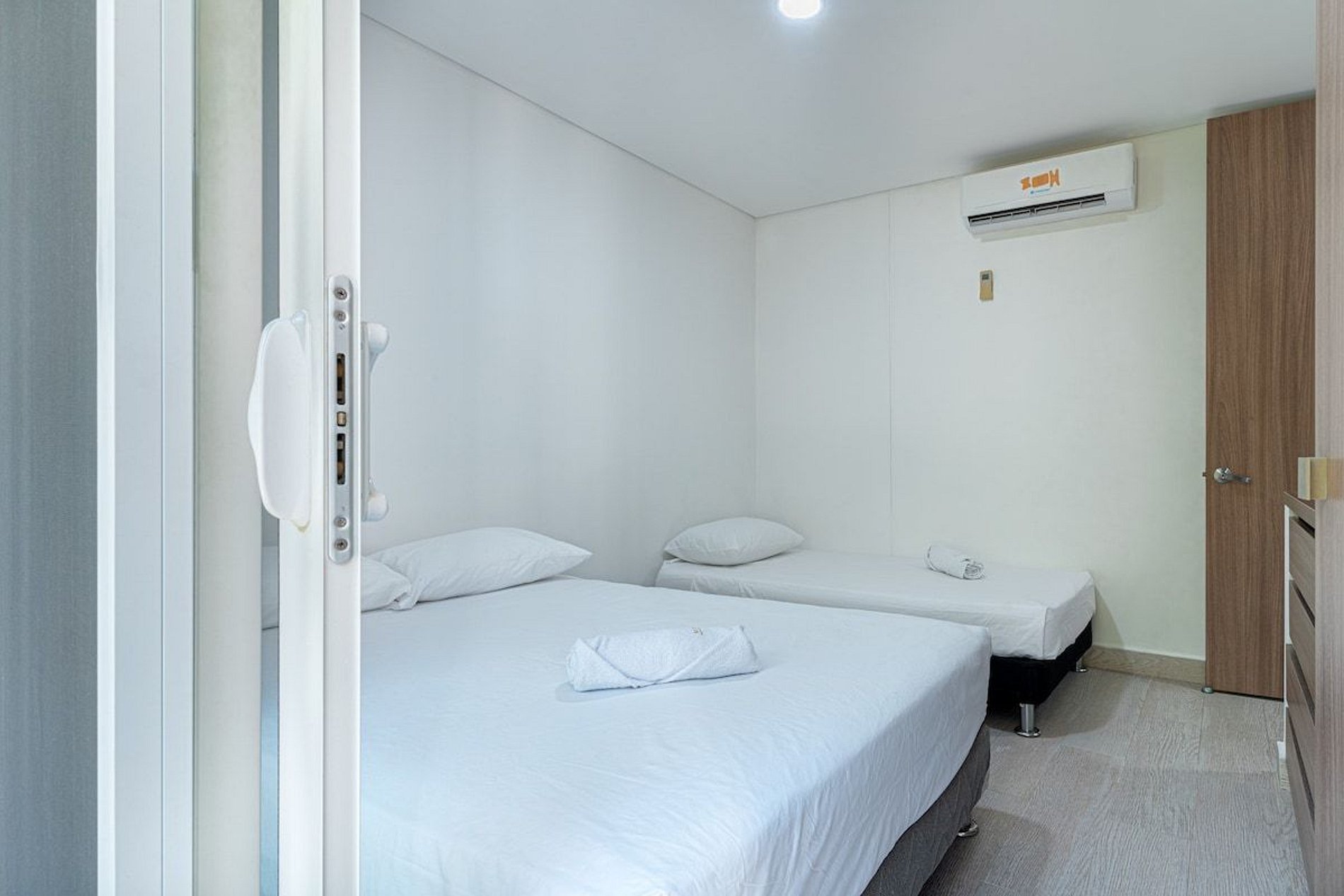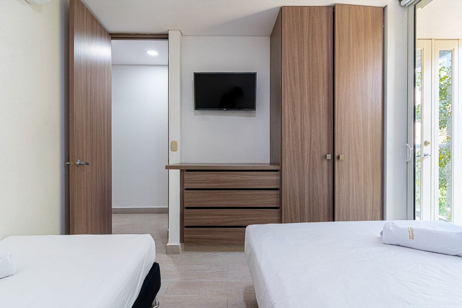 La habitación principal dispone de una cómoda cama doble y baño privado. Una habitación auxiliar cuenta con otra cama doble, y la tercera habitación tiene una cama doble y una cama sencilla, acomodando fácilmente a todo tu grupo.