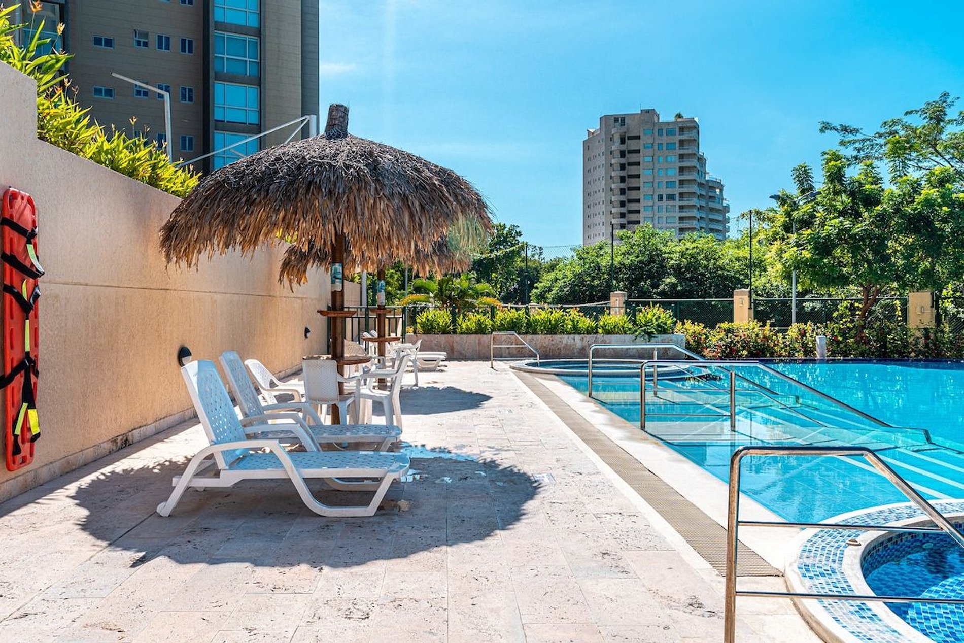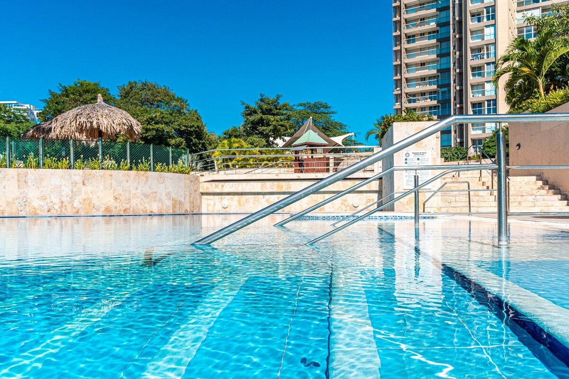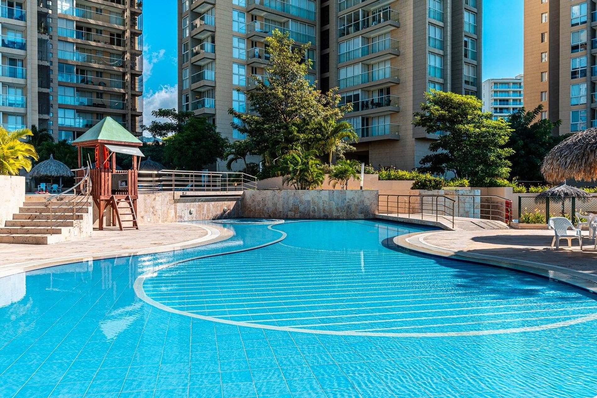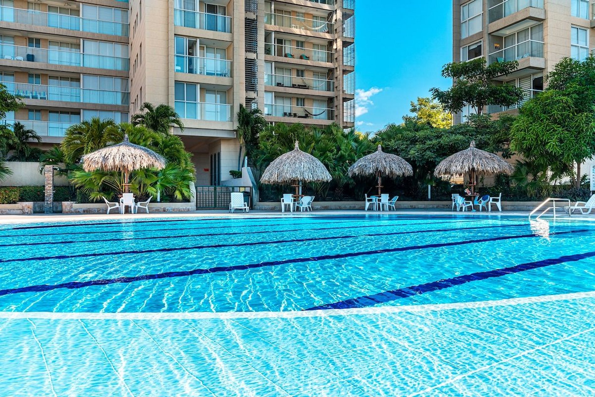 El edificio ofrece una amplia variedad de amenidades de primera clase, como varias piscinas y jacuzzis, un gimnasio bien equipado, un spa, entre otros beneficios que harán de tu estancia una experiencia inolvidable.