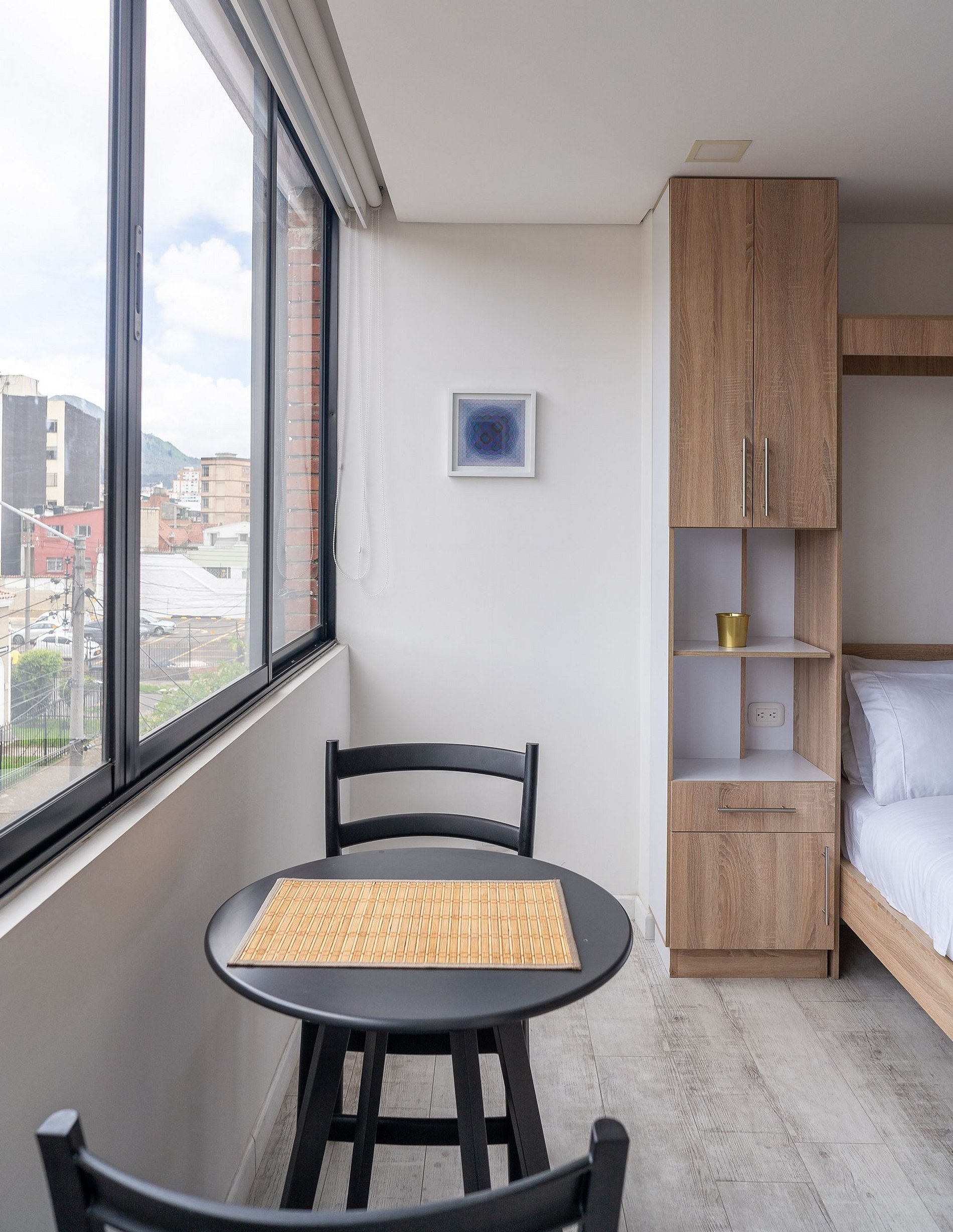 Atardecer 57 x Ahead ofrece 11 aparta estudios modernos en el corazón de Teusaquillo, a minutos del Movistar Arena, El Campín y Chapinero. Ubicados en una zona estratégica con fácil acceso a transporte público, universidades, centros comerciales y restaurantes. Espacios cómodos y bien diseñados, ideales para viajeros, gestionados por un equipo profesional.