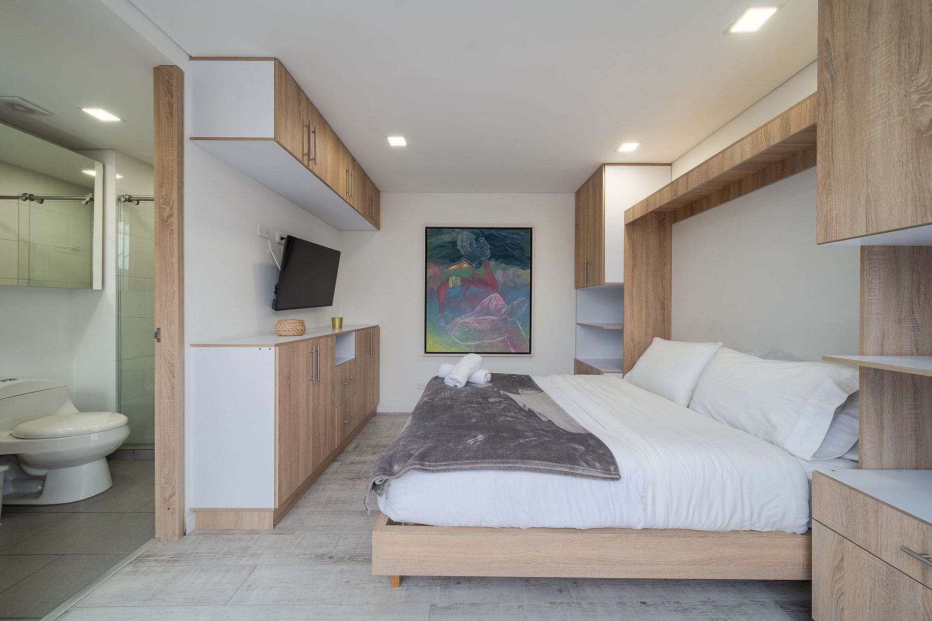 Atardecer 57 x Ahead ofrece 11 aparta estudios modernos en el corazón de Teusaquillo, a minutos del Movistar Arena, El Campín y Chapinero. Ubicados en una zona estratégica con fácil acceso a transporte público, universidades, centros comerciales y restaurantes. Espacios cómodos y bien diseñados, ideales para viajeros, gestionados por un equipo profesional.