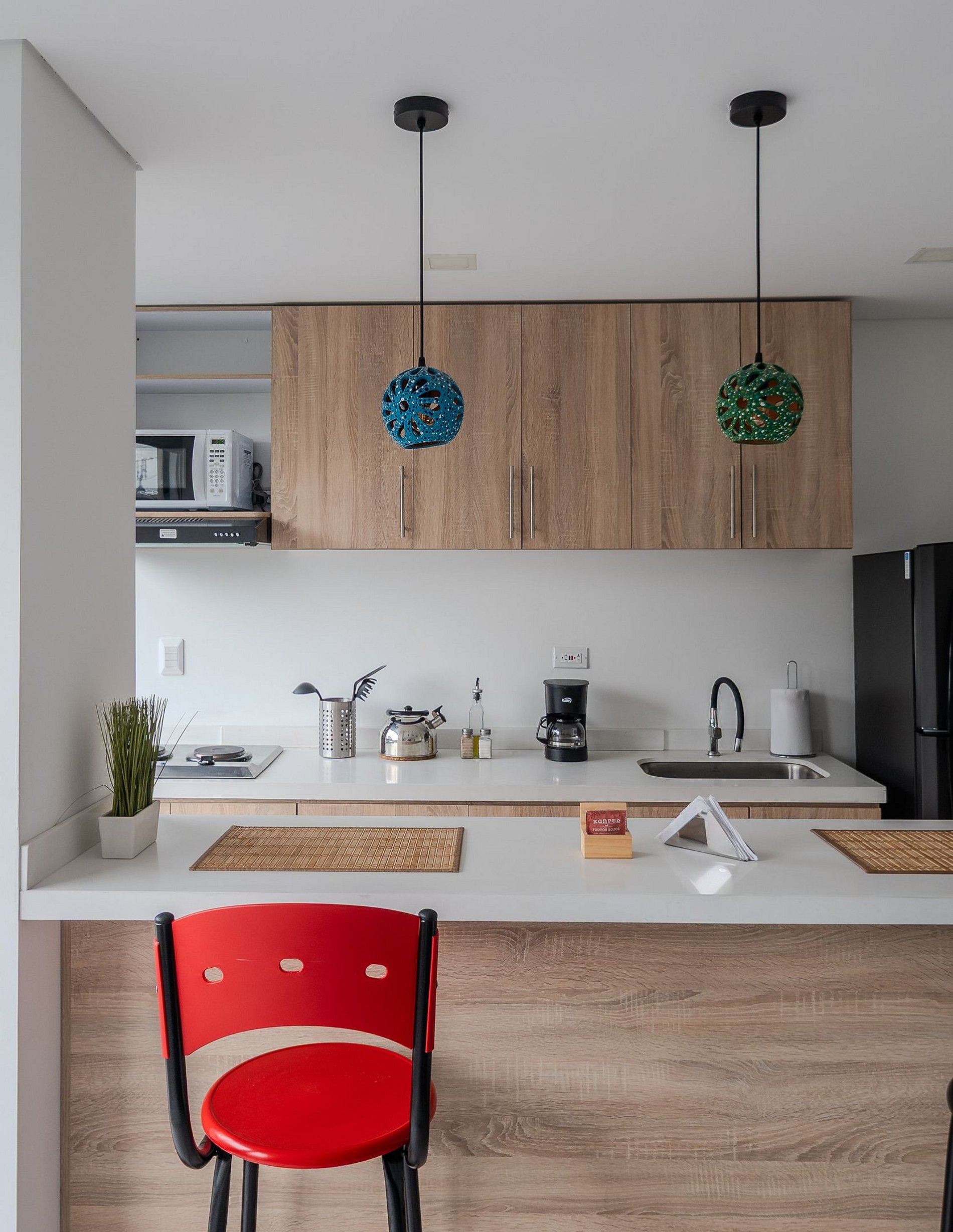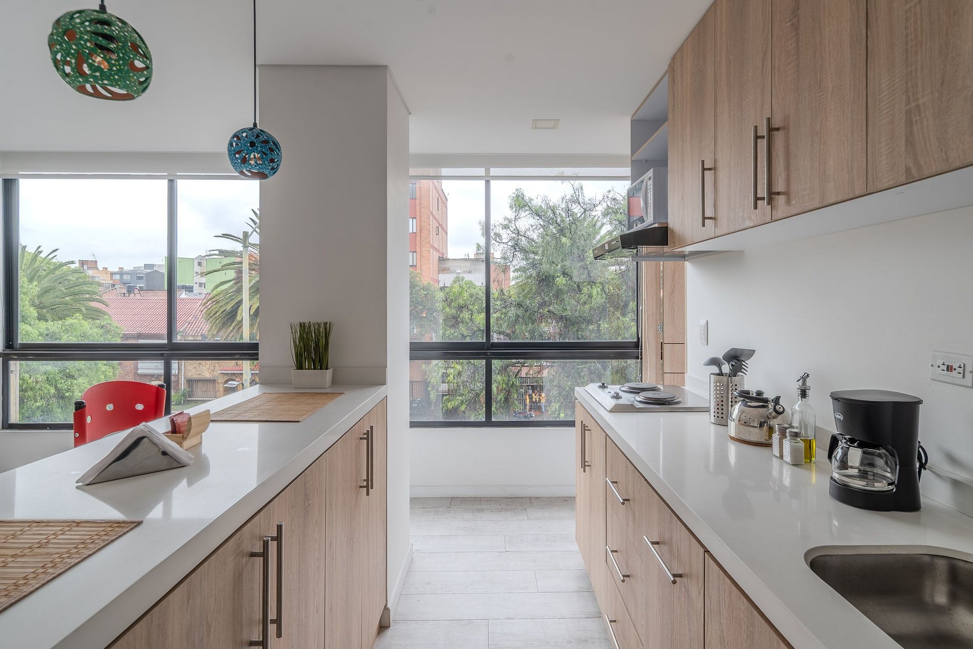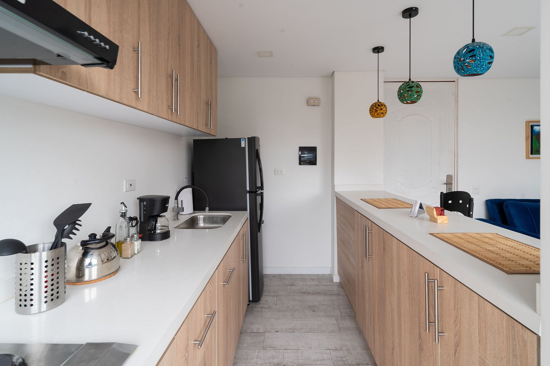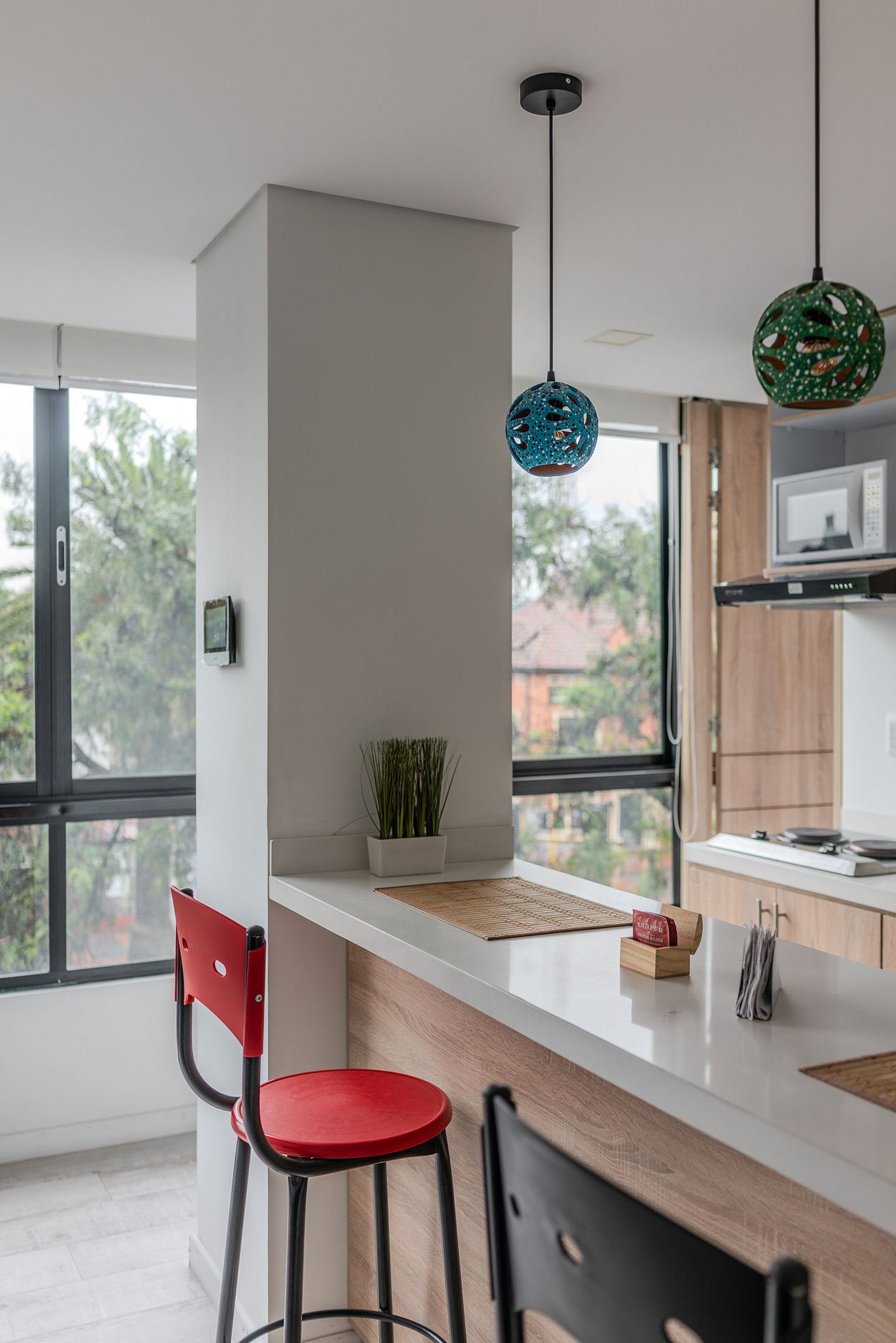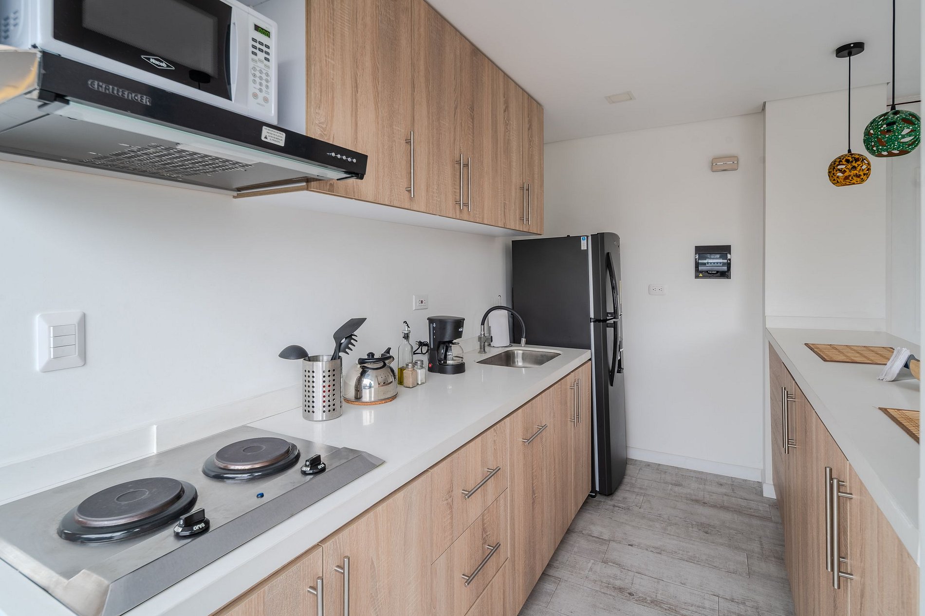 Este apartaestudio de 47 m² es perfecto para viajeros que buscan una estadía práctica, bien equipada y con excelente ubicación. La cocina tipo americana está equipada con estufa eléctrica de dos puestos, nevera, microondas, cafetera, utensilios y loza para 4 personas, perfecta para preparar tus comidas durante la estadía. Todo ha sido pensado para que disfrutes de comodidad, funcionalidad y un diseño acogedor.