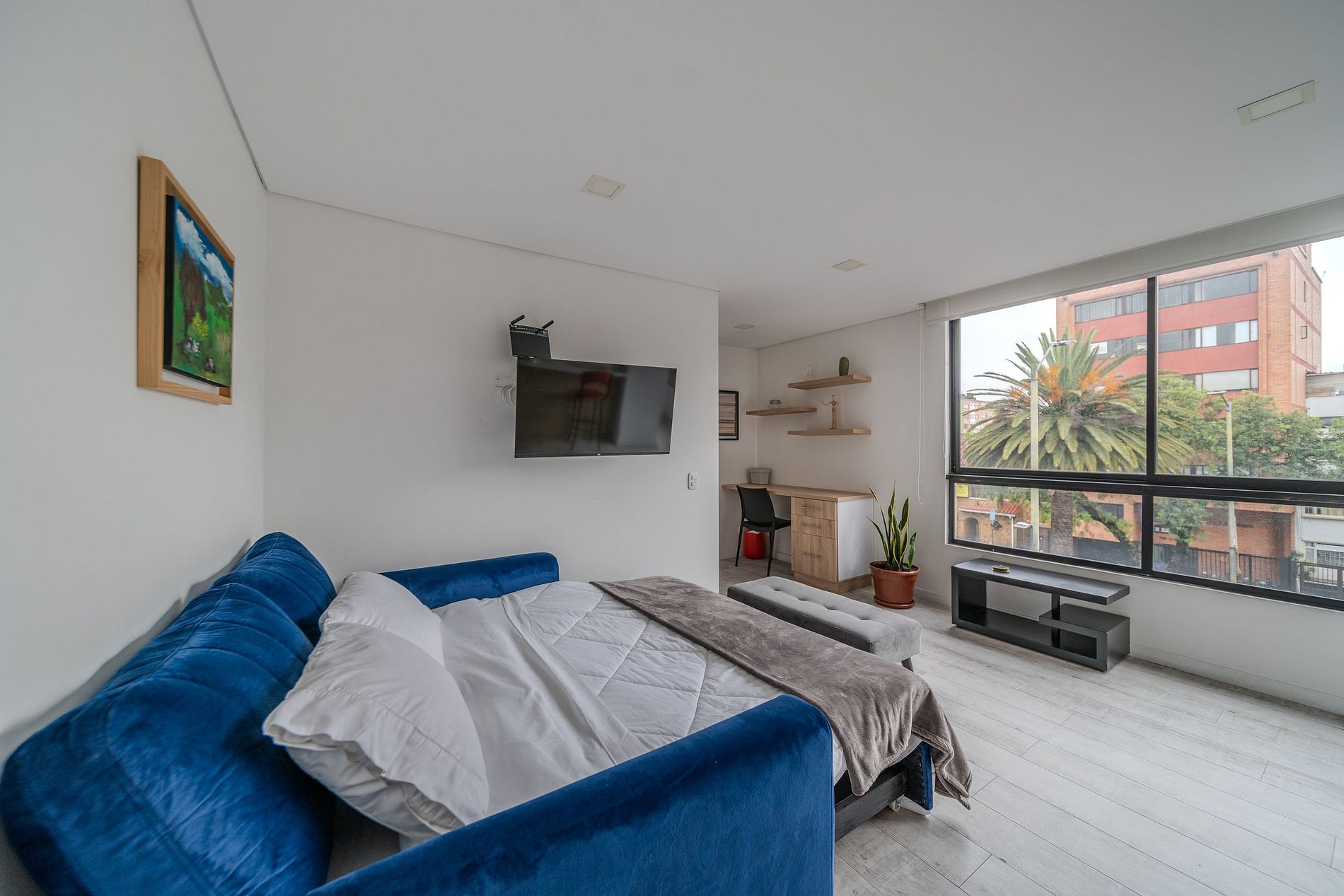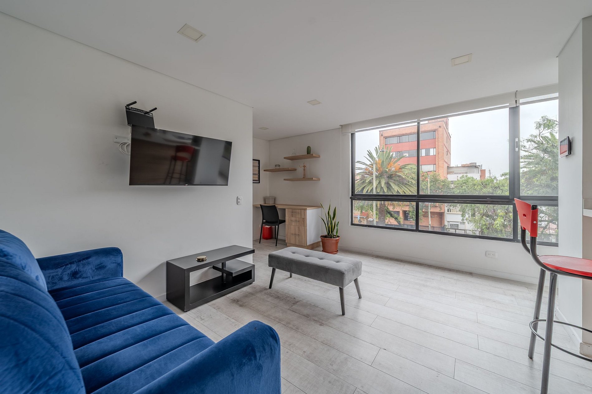 Atardecer 57 x Ahead ofrece 11 aparta estudios modernos en el corazón de Teusaquillo, a minutos del Movistar Arena, El Campín y Chapinero. Ubicados en una zona estratégica con fácil acceso a transporte público, universidades, centros comerciales y restaurantes. Espacios cómodos y bien diseñados, ideales para viajeros, gestionados por un equipo profesional.